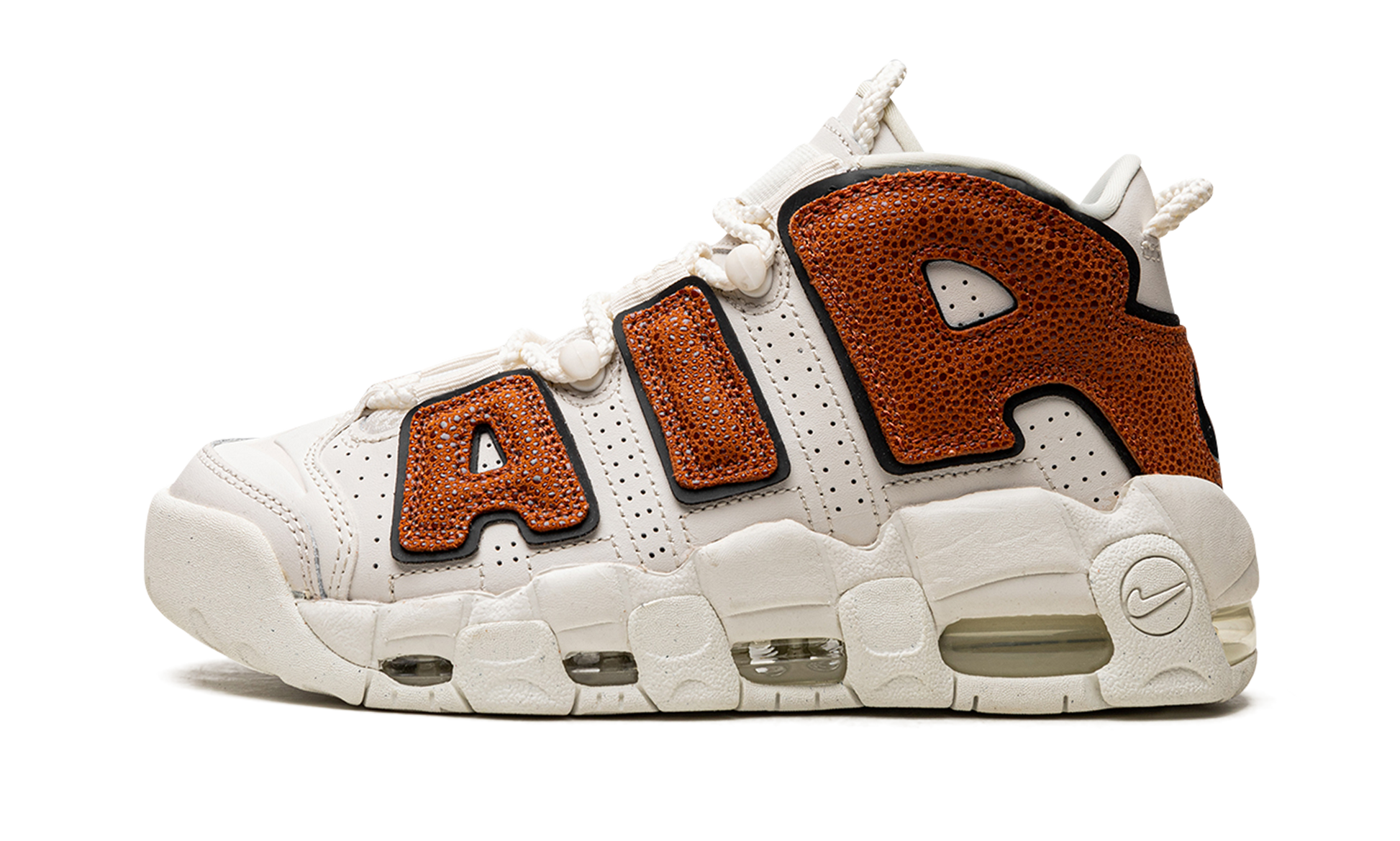 The Women's Nike Air More Uptempo “Basketballâ€?is a women's-exclusive colorway of the vintage basketball shoe with basketball-inspired branding. The Air More Uptempo originally debuted in 1996 and was worn by Scottie Pippen with the Chicago Bulls in the NBA. In recent years. the shoe has made a comeback as a casual. everyday-wearing lifestyle shoe in colorways such as this. which features basketball-textured “AIRâ€?branding on either side of its design. As for the rest of the sneaker. it features a Sail leather construction with a matching Sail rubber midsole. A black jeweled Swoosh is located on the heel. Rope laces give the shoe a casual vibe. Release date: November 9. 2022