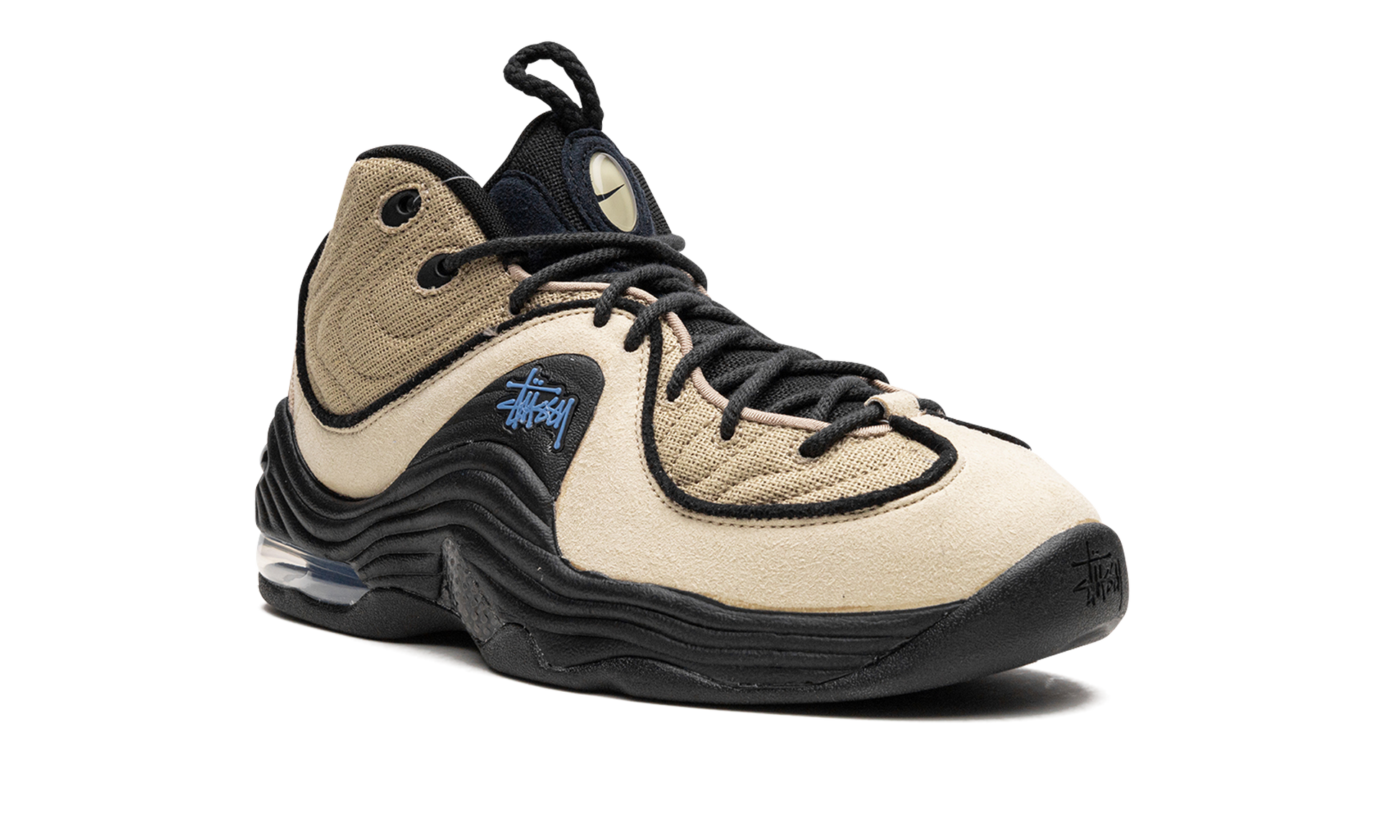 The Stussy x Nike Air Penny 2 “Rattanâ€?is a collaboration on Anfernee “Pennyâ€?Hardaway's second signature shoe by the California based streetwear brand. The Air Penny 2 returned to the spotlight in 2022 on the heels of several popular releases. including Stussy's take on the “Rattanâ€?colorway. A Rattan-colored suede panel is contrasted with a black textile overlay on the shoe's upper. “Stussyâ€?branding appears on the lateral side while Swoosh detailing is found on the tongue and heel. Underfoot. a black Phylon midsole featuring Nike's Zoom Air cushioning technology in the forefoot and an Air unit in the heel. Release date: December 20. 2022