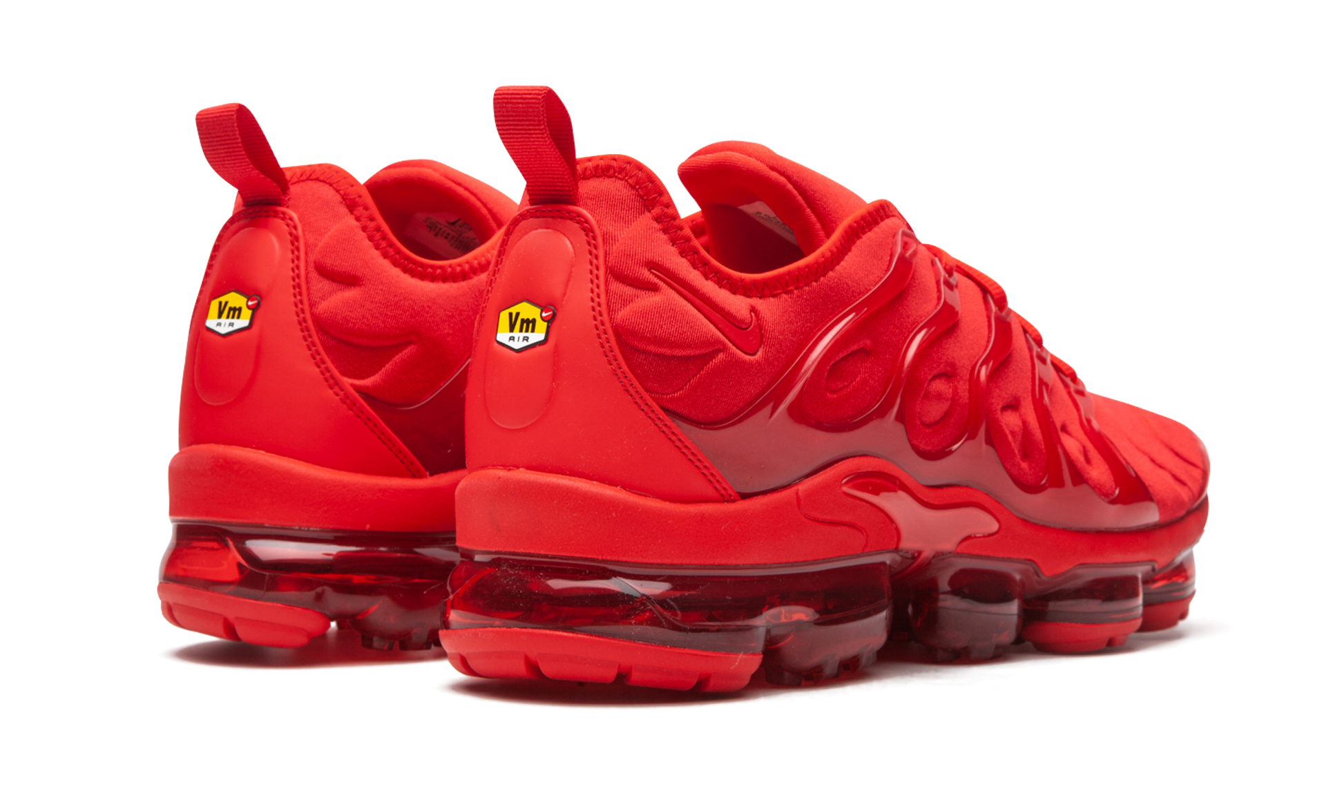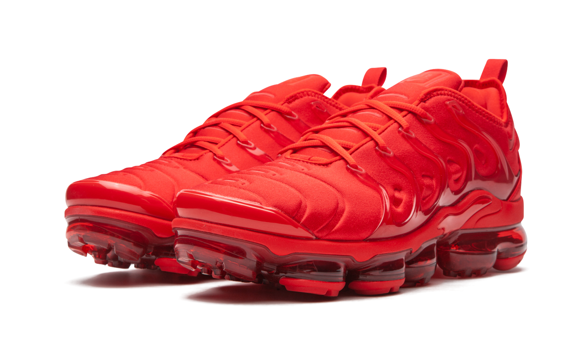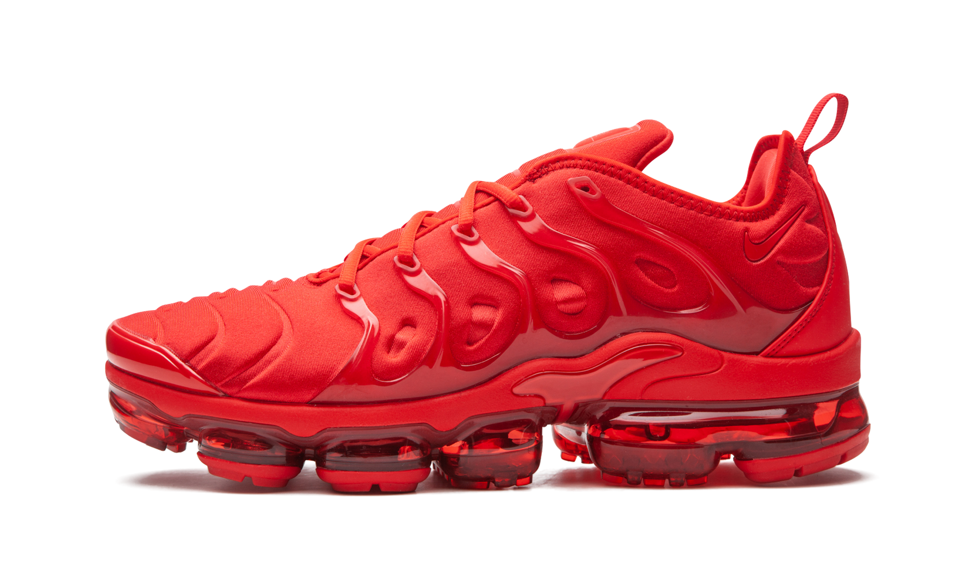 The Nike Air VaporMax Plus "Triple Red" offers fans of bold sneakers the ideal pop of color to level up casual ensembles. The modern Nike shoe showcases a hybrid of Nike technology with the floating cage. padded upper and heel logo of the 1998 Air Max Plus and the revolutionary VaporMax Air technology. This version of the Nike Air VaporMax Plus sneaker makes a monochromatic statement with just one shade of red draped over its entirety.