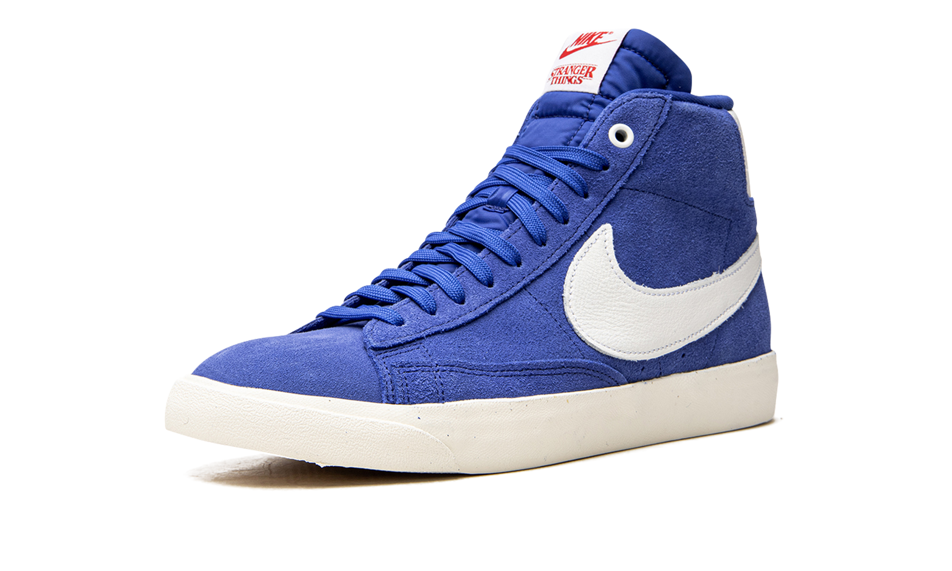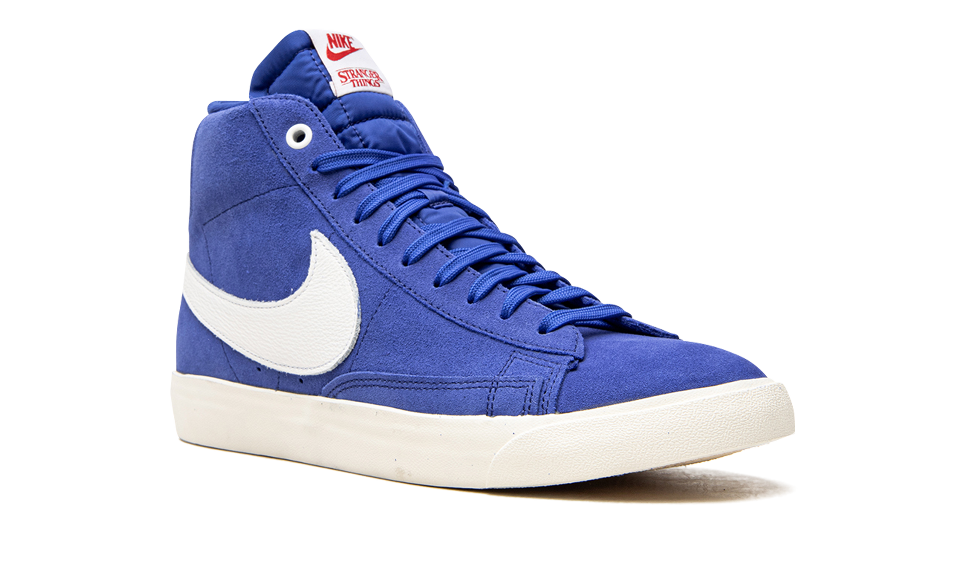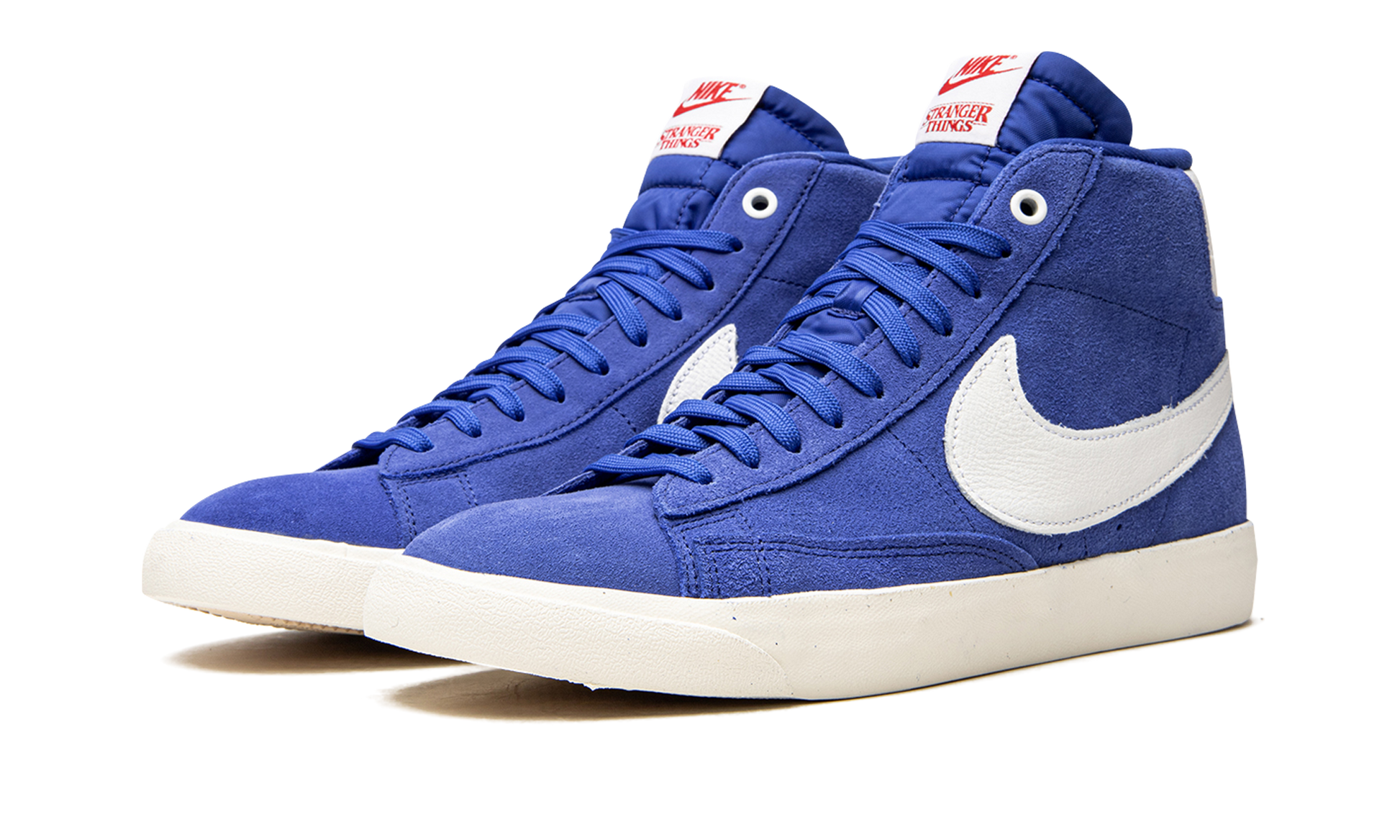 The Stranger Things x Nike Blazer “OG Packâ€?in blue is part of the collection from Nike celebrating Season 3 of the hit sci-fi series. Part of the “OG Packâ€?featuring colorways similar to original releases of the Blazer. Cortez. and Tailwind '79 in the collection. this Blazer features a blue suede upper with white leather Swooshes and ankle panels. the latter which is stamped with â€?9â€?and â€?5â€?on opposite heels to represent the year that Season 3 of Stranger Things takes place. The three models in the “OG Packâ€?come in red. white. and blue color schemes as a reference to the 4th of July. which takes place near the climax of the story in Season 3. “July 4. 1985 Hawkins. Indianaâ€?text is found on the inside of each tongue tab. while the outer side features dual Stranger Things and Nike branding. The Stranger Things x Nike Blazer “OG Pack”Released on July 12. 2019 in limited quantities.