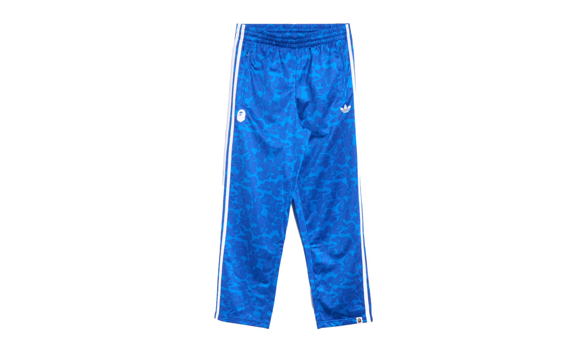 Step into streetwear history with the ADIDAS Firebird Track Pants. famously nicknamed "BAPE - Blue." This exclusive collaboration with A Bathing Ape features an all-over BAPE solid camo print in a striking blue colorway. merging '80s hip-hop heritage with Japanese street style. Crafted from 100% recycled polyester. they offer a comfortable loose fit. elastic waistband. and side pockets. Co-branded Trefoil and Ape Head logos mark this as a must-have collectible for any enthusiast.