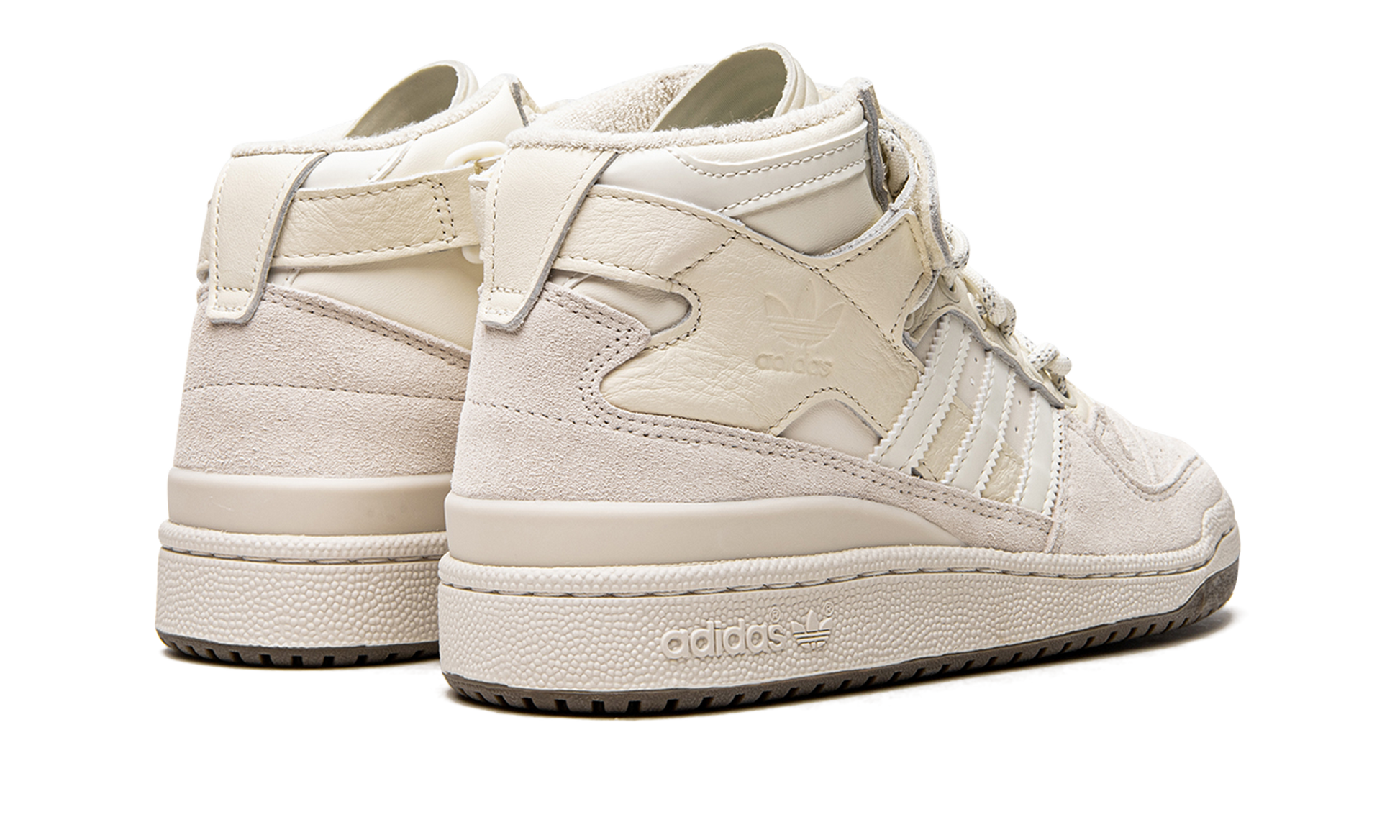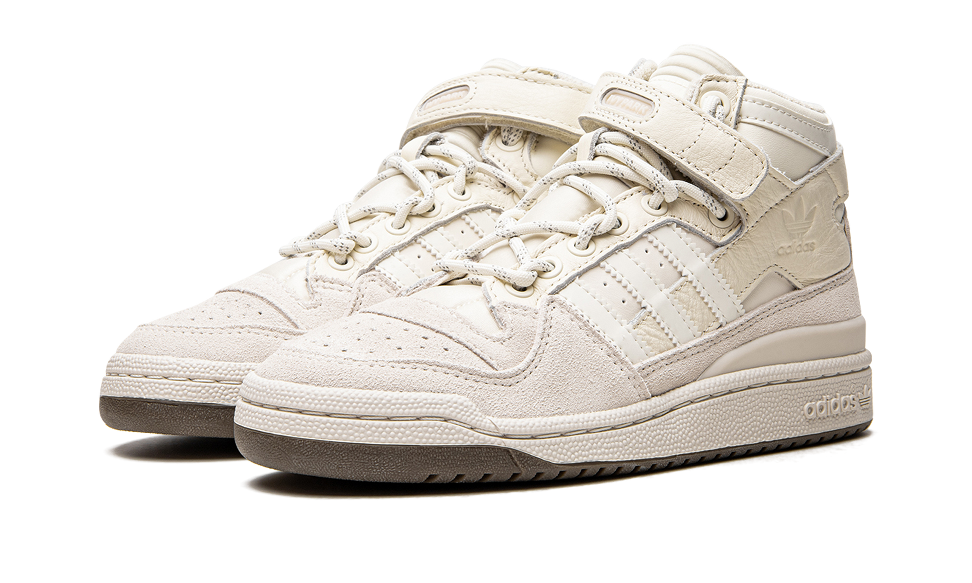 The Ivy Park x adidas Forum Mid “Icy Parkâ€?is a neutral colorway of the retro basketball shoe included in the “Icy Parkâ€?collaboration between Beyoncé's sportswear line and adidas. The Forum Mid “Icy Parkâ€?features a mostly monochromatic cream-colored design. Specifically. cream suede appears on the toe. forefoot. and mudguard. Tonal leather is found on the mid-panel and on the collar. Adidas's classic Three Stripes branding is located on either side of the shoe. A debossed adidas TreFoil logo appears on the lateral side of the adjustable straps around the ankle. Underfoot. a cream rubber sole completes the look. Release date: February 19. 2021