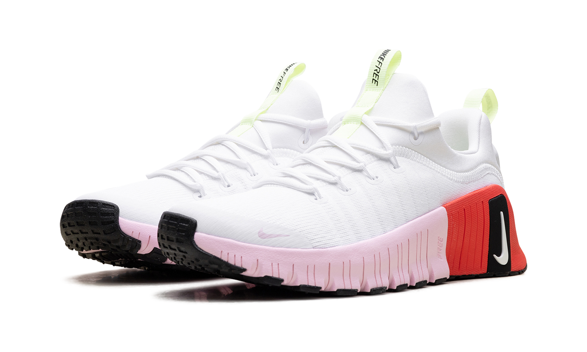 The Nike Free Metcon 6 is your most adaptable and responsive trainer. seamlessly bridging the flexibility of Nike Free for dynamic movement with the stable foundation of the Metcon line for lifting. This women's edition is energized by a vibrant combination of neon and bright accents on a clean white canvas.