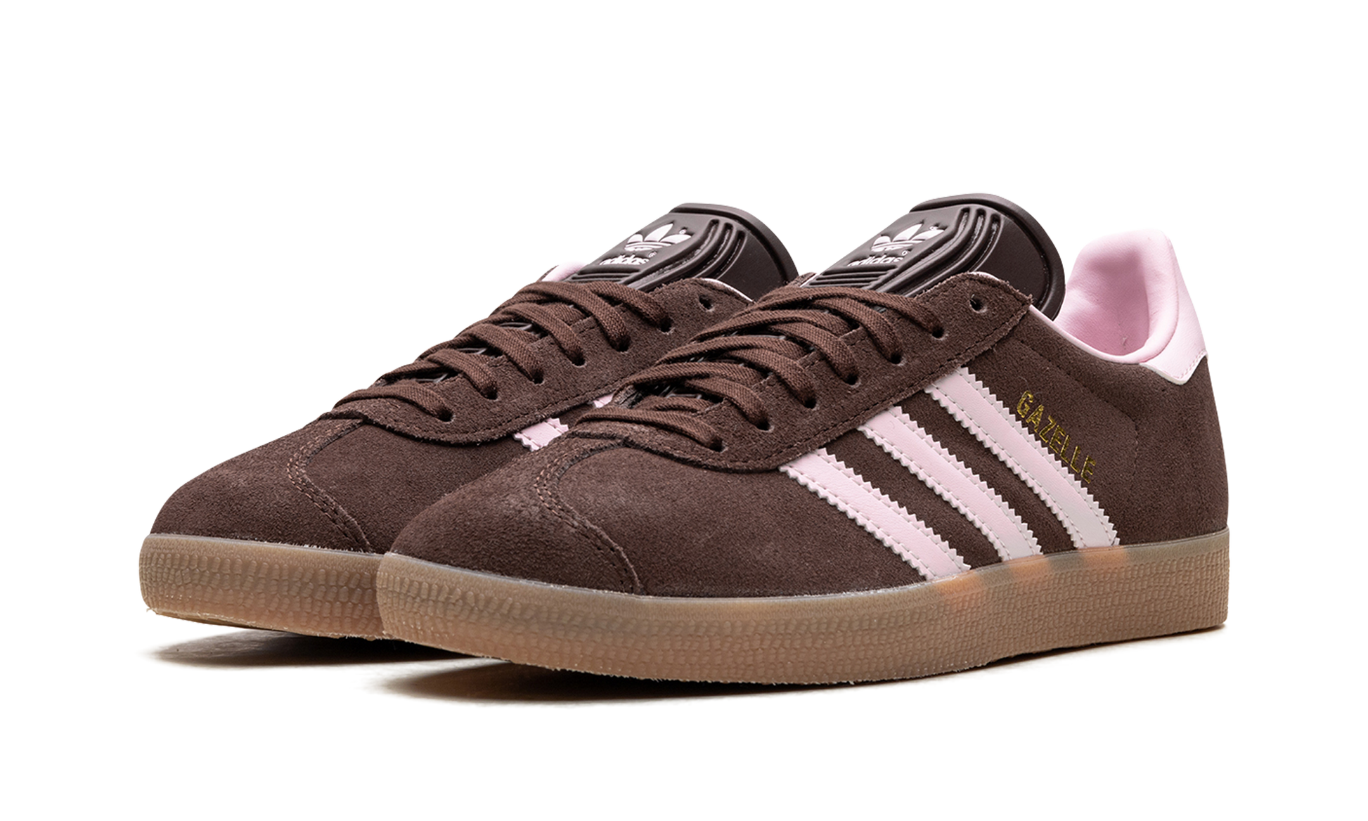 The Gazelle is one of ADIDAS's most iconic and timeless silhouettes. originally designed as an all-around training shoe. This specific edition features a low-profile build with an upper primarily in Auburn (a reddish-brown tone). which is typically constructed from high-quality suede. The classic three-stripes branding and heel tab are highlighted in Clear Pink. providing a soft. contrasting pop of color. The shoe maintains the signature design elements. including a textured tongue. T-toe overlay. and a rubber outsole.