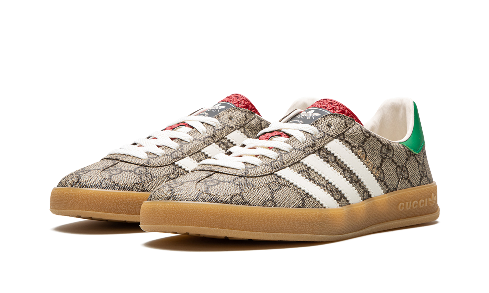 The Gucci x adidas Gazelle “Beigeâ€?is a limited edition collaboration by the legendary high fashion house on the popular lifestyle sneaker that features the brand's iconic monogram pattern. Gucci and adidas's second collaboration brings a luxurious twist to the adidas Gazelle by placing the former's “GGâ€?monogram print in an all-over style on the shoe's canvas upper. The look is inspired by 1980s-era sportswear aesthetics. Black leather Three Stripes branding can be found on either side of the shoe while gold co-branding appears on the black leather heel tab. Additional co-branding is found on the tongue. “GGâ€?embossed branding appears on the gum rubber midsole. Release date: March 31. 2023