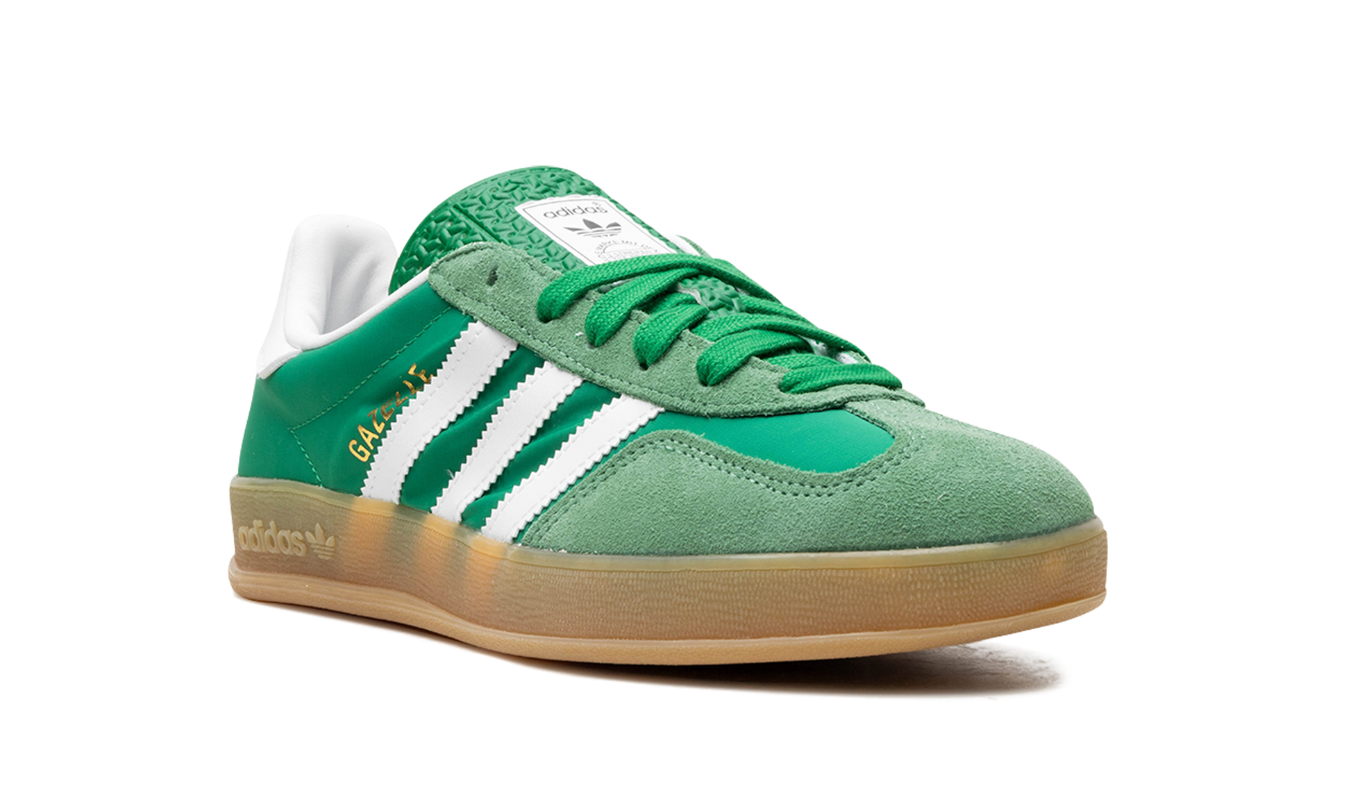 Hit the streets in the vibrant Adidas Gazelle Indoor. the "Terrace Standout." in a bold "Collegiate Green Gum" colorway. Once an iconic indoor training shoe. this model sports a plush suede upper in a striking Collegiate Green. contrasted by crisp Cloud White leather accents. The defining feature is the slightly translucent gum rubber outsole. which offers reliable grip and a unique. classic style. making this essential sneaker the perfect foundation for any retro or contemporary look.