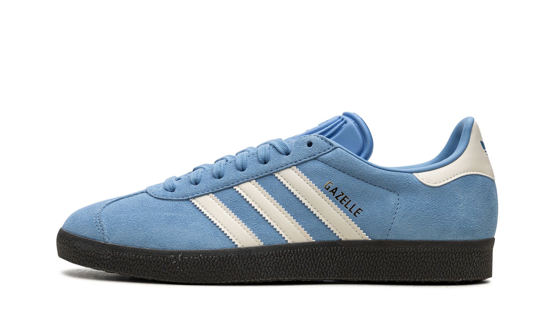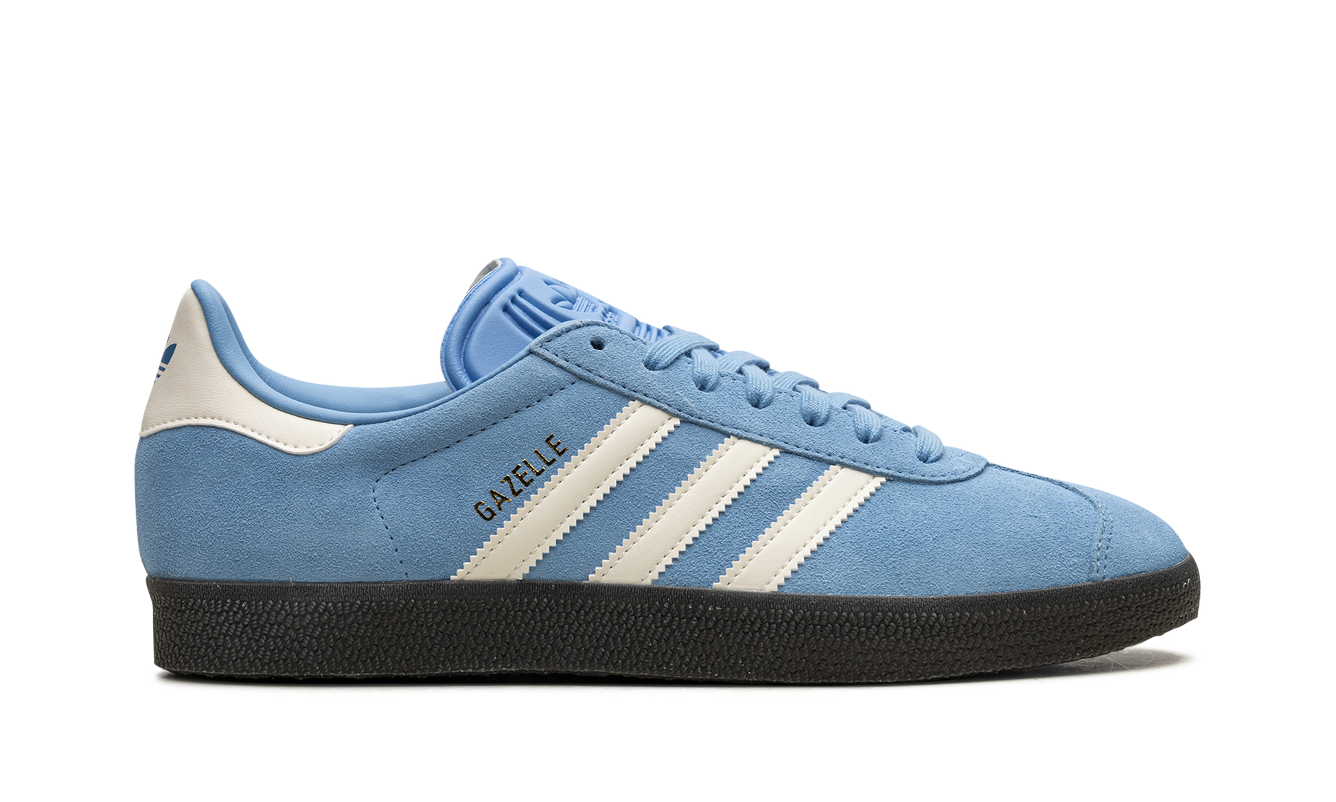 The adidas Gazelle “Sky Blueâ€?is a colorway of the retro shoe with an eye-catching. blue-based look. The upper features a Sky Blue suede construction with Chalk White leather Three Stripes branding on the sides. and Chalk White leather on the “adidasâ€?branded leather heel tab. Gold “Gazelleâ€?detailing appears on the lateral side of the mid-panel. while tonal debossed adidas Trefoil branding can be found on the tongue. A dark brown gum rubber sole completes the striking colorway.