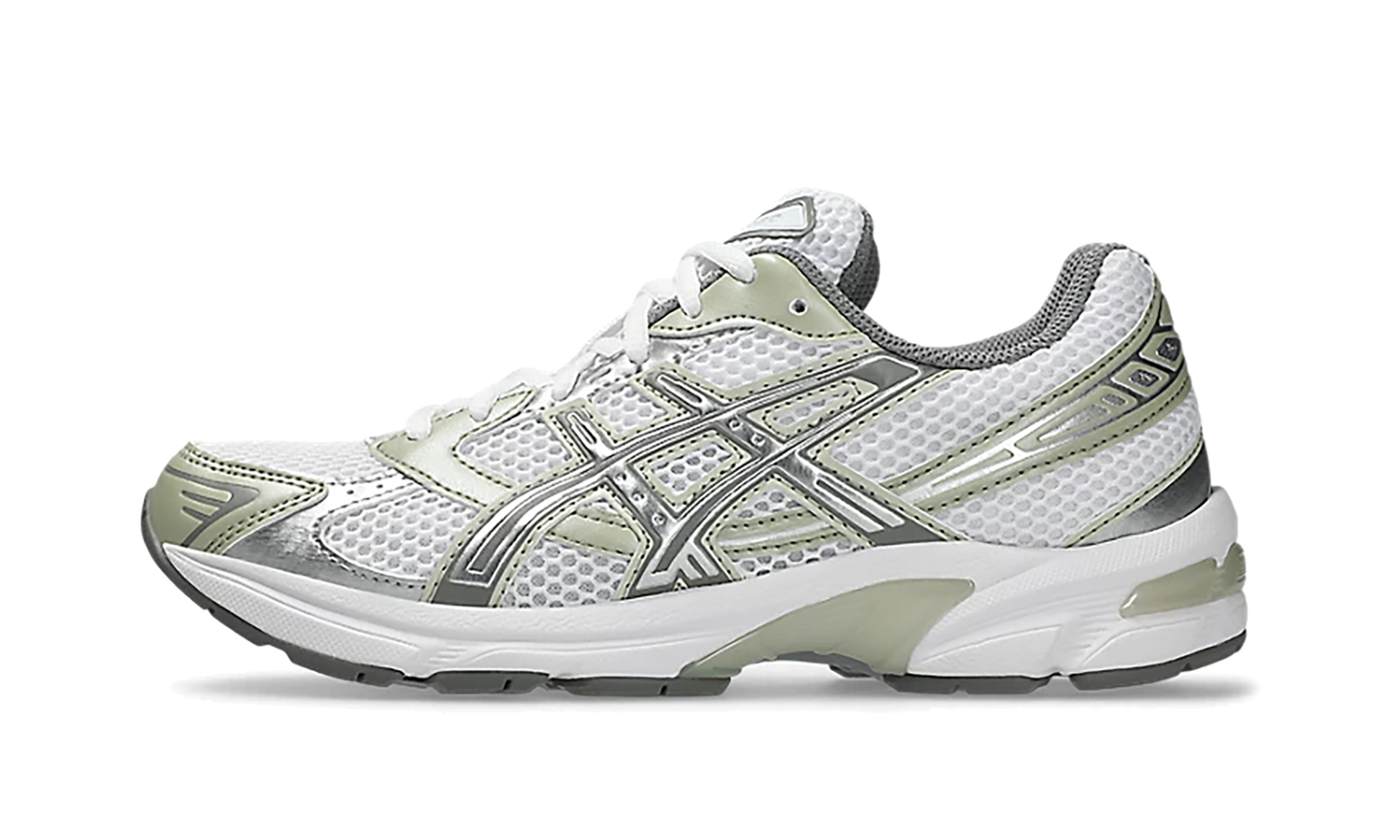 Add a natural. sporty vibe to your collection with the ASICS GEL-1130 WMNS "White Dried Leaf Green." This women's runner revives the popular late-2000s aesthetic. featuring a white mesh upper accented by dark "Dried Leaf Green" and metallic overlays. Engineered for everyday movement. it includes the stabilizing TRUSSTICâ„?system and signature GEL® technology in the heel. delivering excellent cushioning and reliable support with a fresh. earthy style.