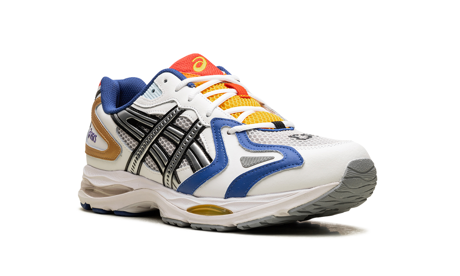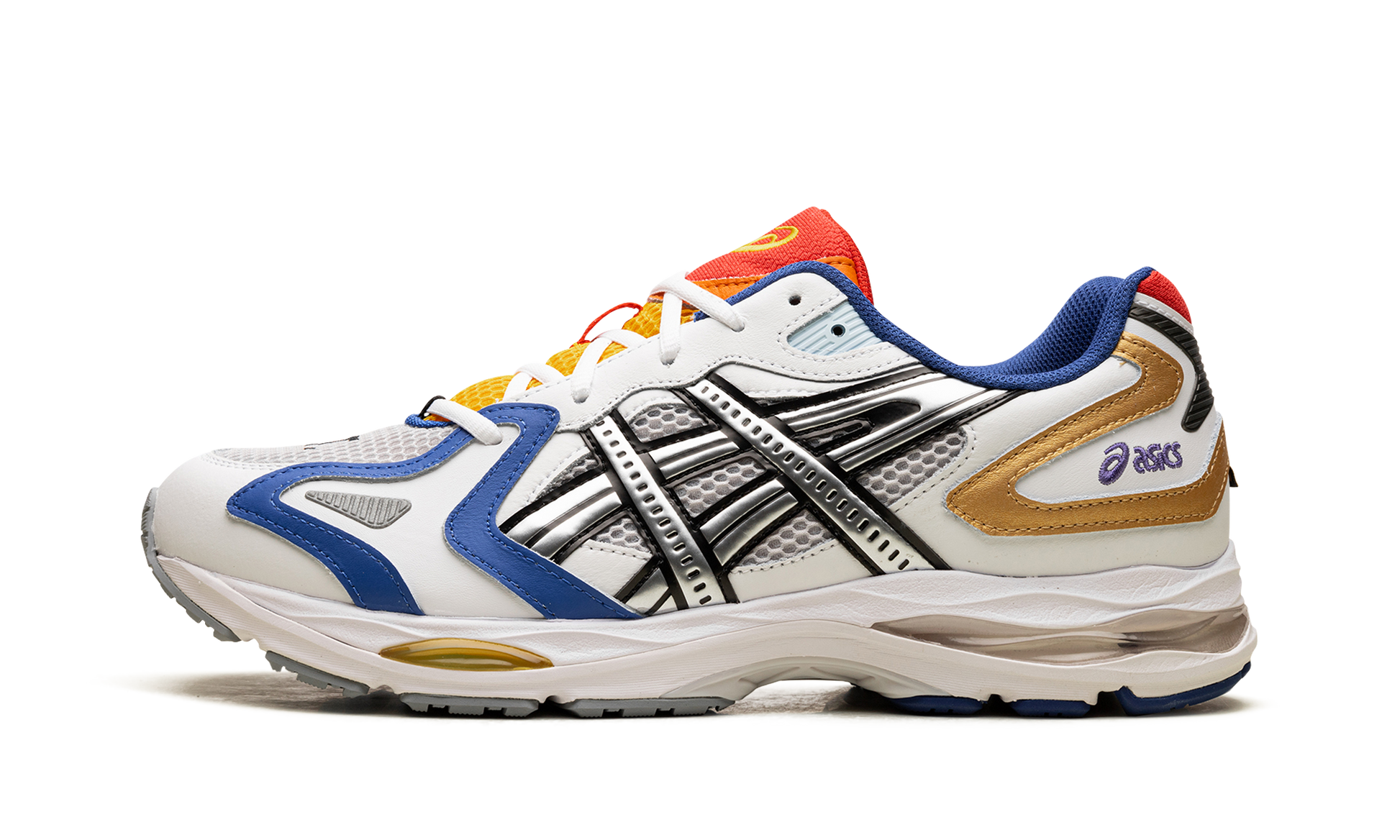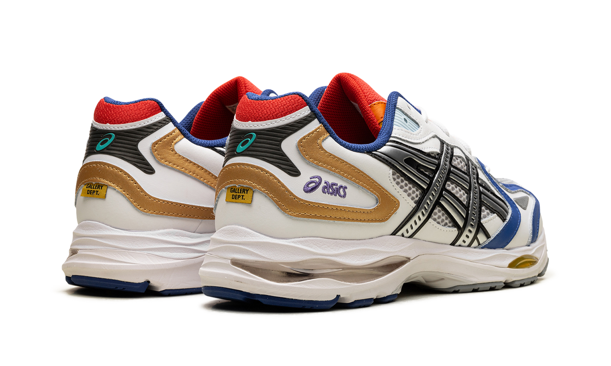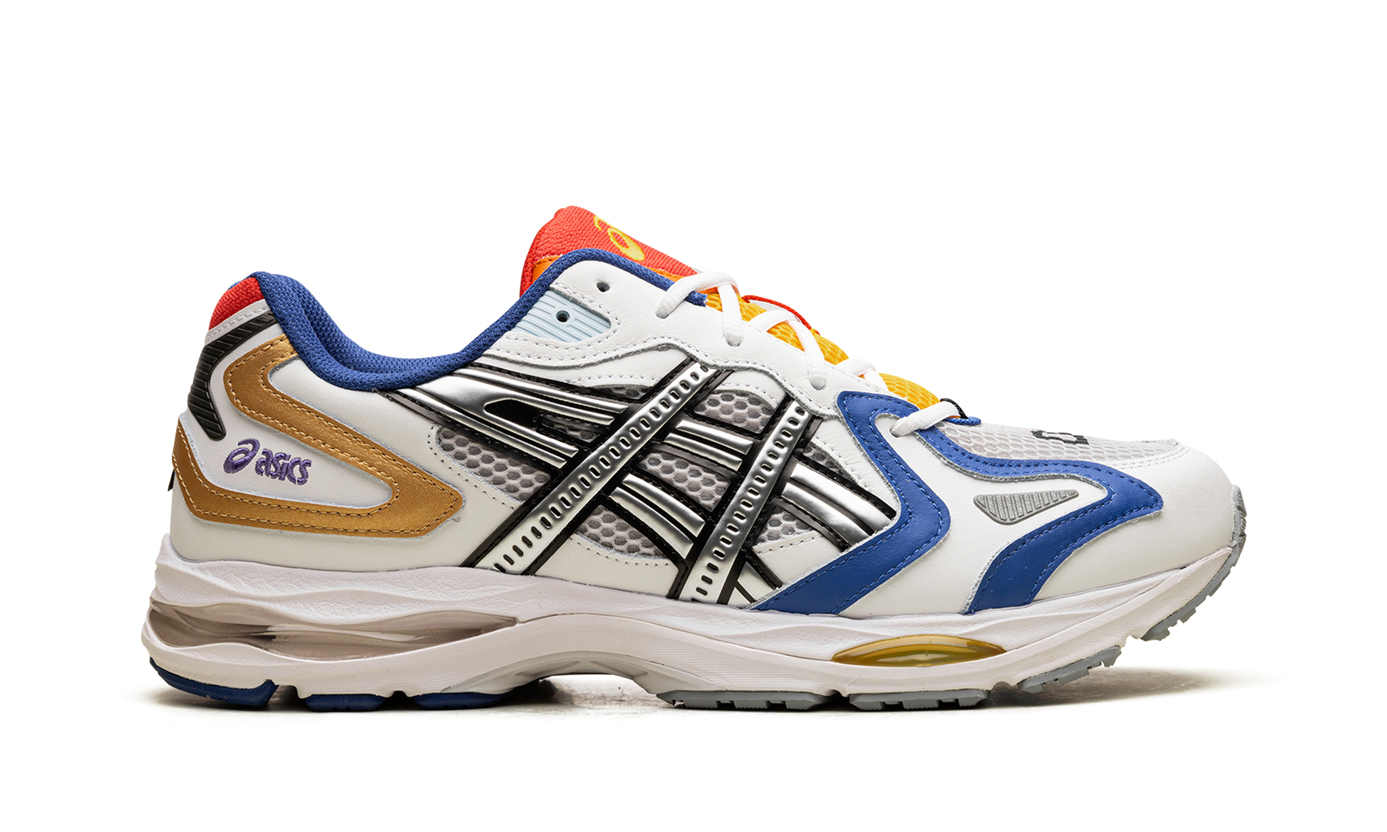 Discover the artistic blend of heritage and avant-garde style with the ASICS GEL-K1011 "Gallery Dept. White/Pure Silver." This collaboration remixes late '90s to early 2000s GEL-KAYANOâ„?influences with a modern aesthetic. including "DEPT." stenciling on the toe box. The White and Pure Silver mesh and leather upper is layered with bright accents of blue. red. and gold. exuding vibrant "Mental Energy." Equipped with dual GEL technology. FLYTEFOAM. and FLYTEFOAM PROPEL cushioning. this shoe delivers responsive performance and eye-catching comfort.