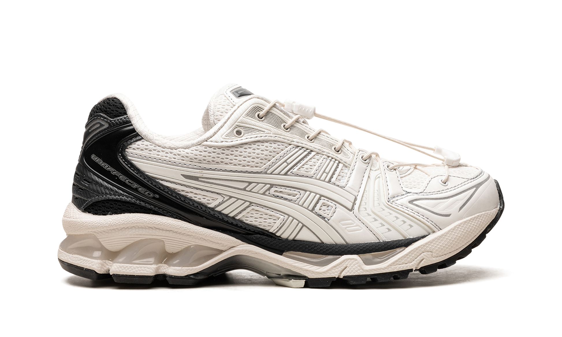 The Unaffected x ASICS Gel-Kayano 14 “Infinite Wonders Pack - Whiteâ€?is a collaboration by the South Korean brand and ASICS that honors the 30th anniversary of the Gel-Kayano series. From a collaborative “Infinite Wonders Pack.â€?the colorway features a white mesh base with tonal synthetic overlays. Unaffected added a modified toggle lacing system that extends down to the toebox. Co-branding is found on the lateral side of the heel. Underfoot. a lightweight EVA midsole with ASICS's signature Gel cushioning completes the design. Release date: November 24. 2023