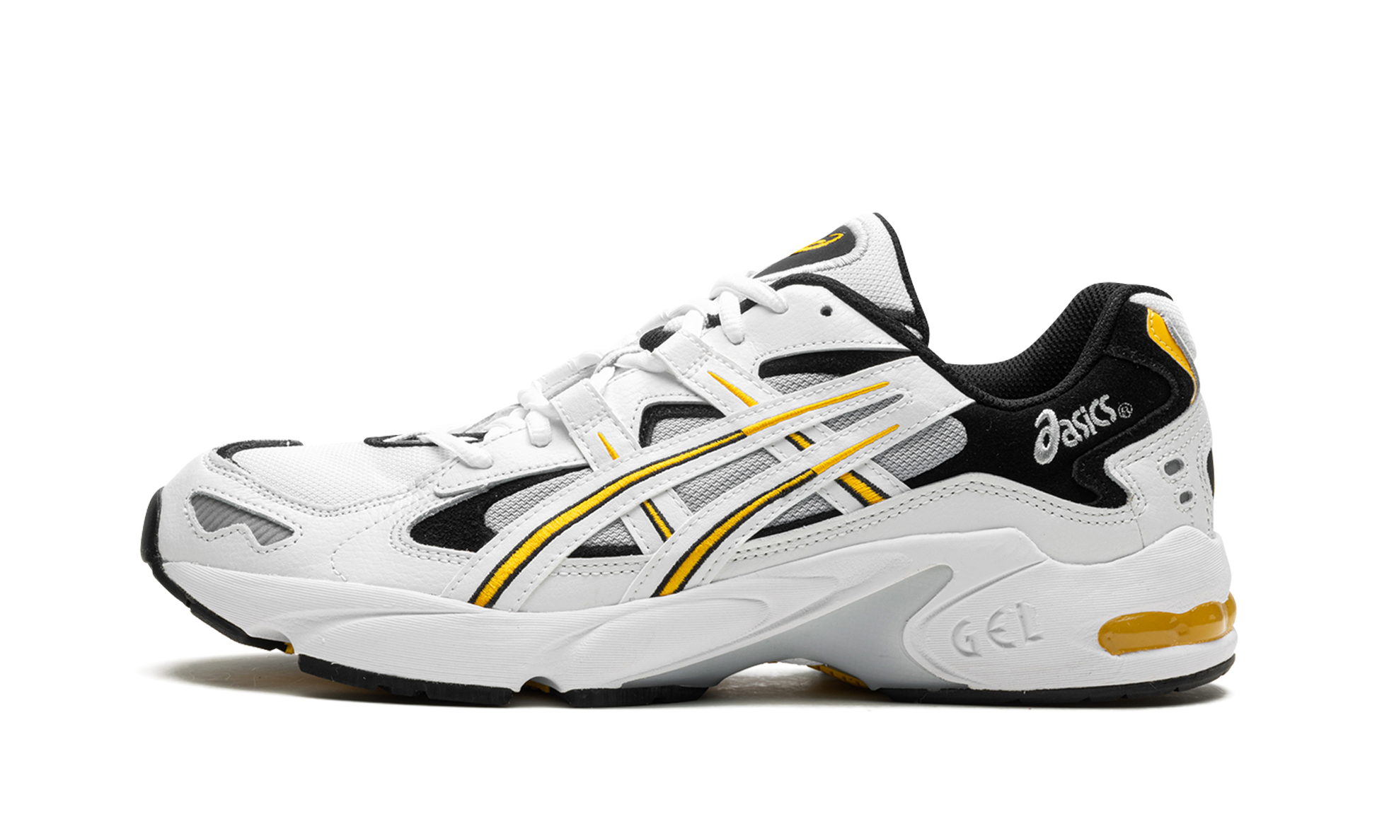 Step into a classic with the ASICS GEL-KAYANO 5 OG sneaker. affectionately nicknamed the "Kith-Saffron" edition. This exclusive collaboration revives the iconic 1999 silhouette with a fresh. vibrant colorway. It features a breathable mesh upper with premium leather overlays and signature ASICS GEL technology in the midsole for exceptional. all-day comfort. The striking White/Saffron design. accented with blue and black details. offers a bold. retro-inspired aesthetic perfect for men who love the Y2K-era "dad shoe" look. Grab this exclusive piece of running heritage!
