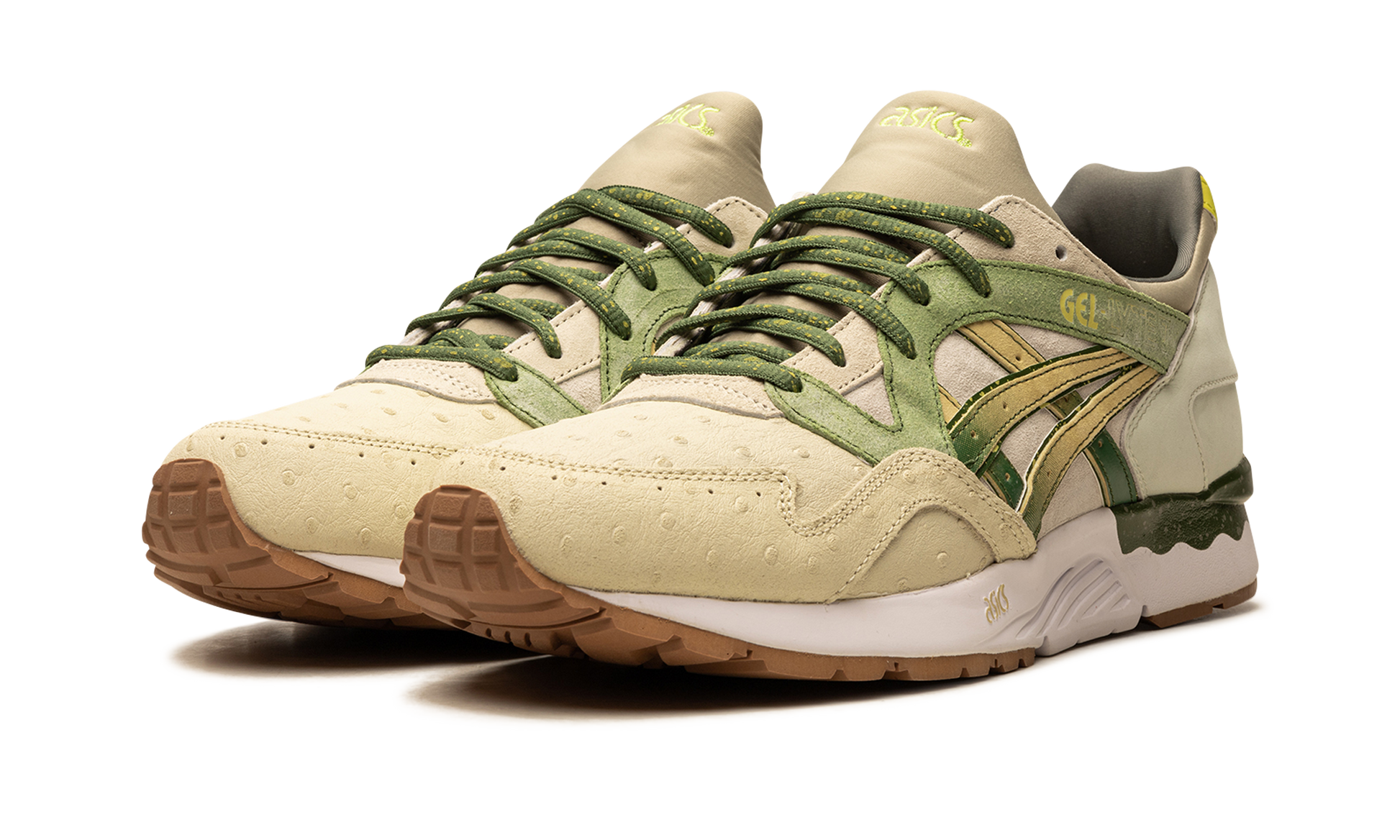 Las Vegas sneaker shop Feature teamed up with ASICs for the first time in 2016. presenting this colorway of the GEL-Lyte V inspired by the desert surroundings of their hometown. More specifically. the colorway references the prickly pear cactus in tones of green and sandy tan.