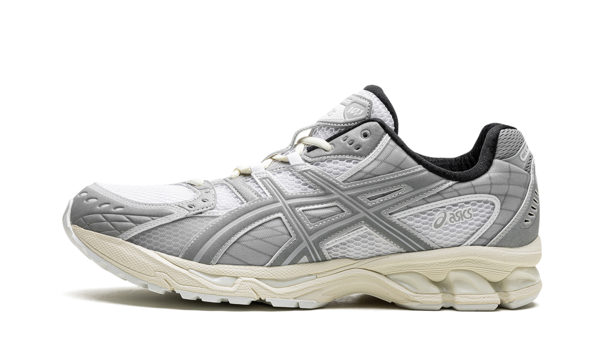 Hit the streets with the exceptionally comfortable ASICS GEL-Nimbus 10.1 "Sheet Rock". This shoe revives the late 2000s aesthetic of the GEL-NIMBUSâ„?10 runner. featuring an asymmetric design and highly breathable open mesh upper. The name "Sheet Rock" perfectly complements the light gray and white color palette. offering a crisp. versatile look. Engineered for cloud-like wear. the midsole boasts dual-layer EVA foam. a TRUSSTICâ„?system. and signature GELâ„?technology for advanced cushioning and stability.