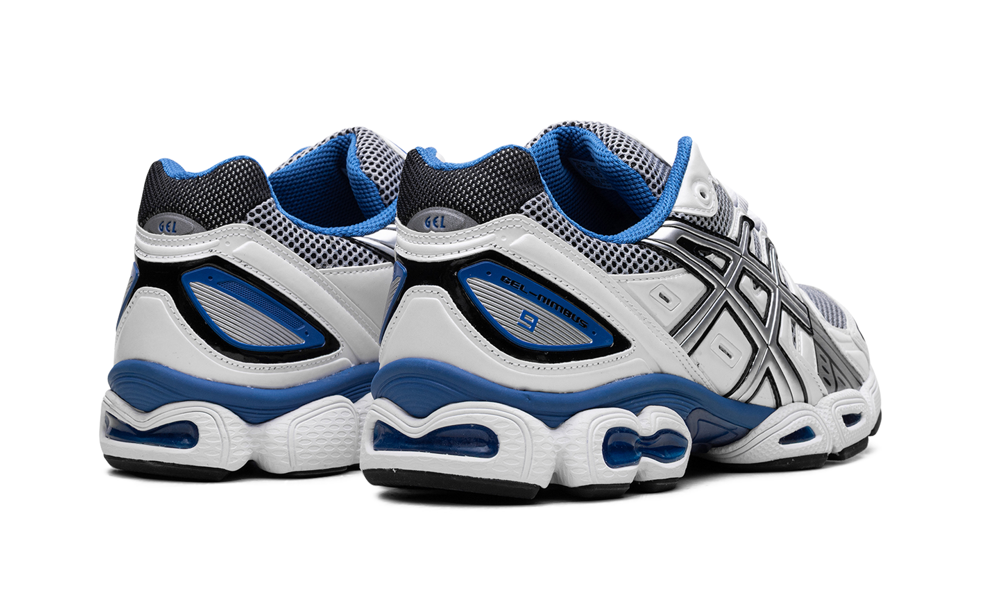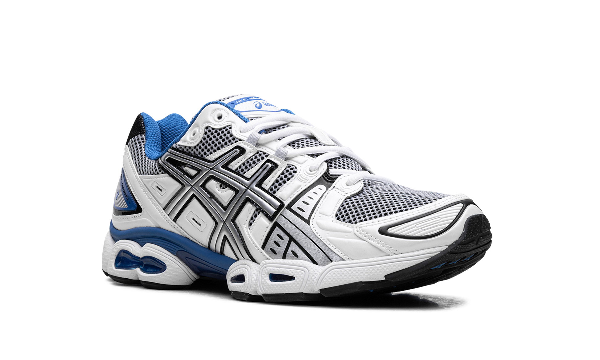 Slip into the legendary comfort of the ASICS GEL-NIMBUS 9 'White/Lake Drive' running shoe. a classic trainer that seamlessly merges performance tech with retro style. Originally designed in 2007. this sneaker embodies the chunky. industrial aesthetic of the Y2K era with its layered mesh and synthetic leather paneling. The segmented midsole features signature GELâ„?technology inserts in both the heel and forefoot. providing superior cushioning and a stable. comfortable stride. perfect for daily wear or light training.