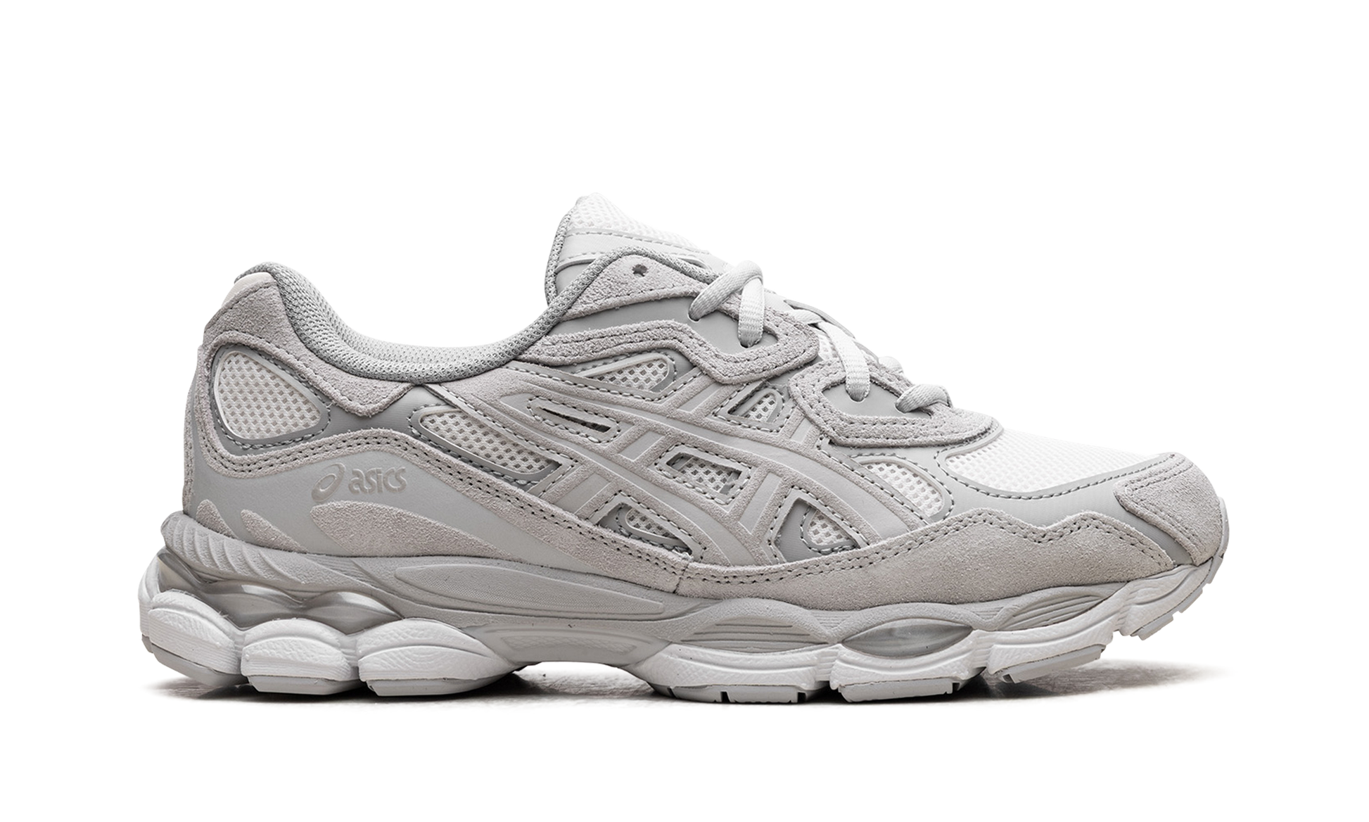 Achieve peak Y2K style and comfort with the ASICS GEL-NYC "Cream/Cloud Grey" sneaker! This coveted silhouette masterfully blends the technical upper design of the early 2000s GEL-NIMBUSâ„?3 and GEL-MC PLUSâ„?V. The sophisticated "Cream" mesh base and premium suede overlays in Cloud Grey are given a fresh pop by subtle blue and brown accents. Built on the tooling of the GEL-CUMULUSâ„?16 with dual GEL technology inserts. this lifestyle shoe ensures advanced cushioning and smooth. supportive comfort for conquering the city.