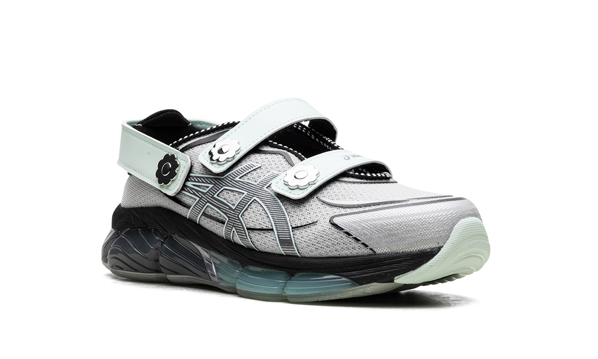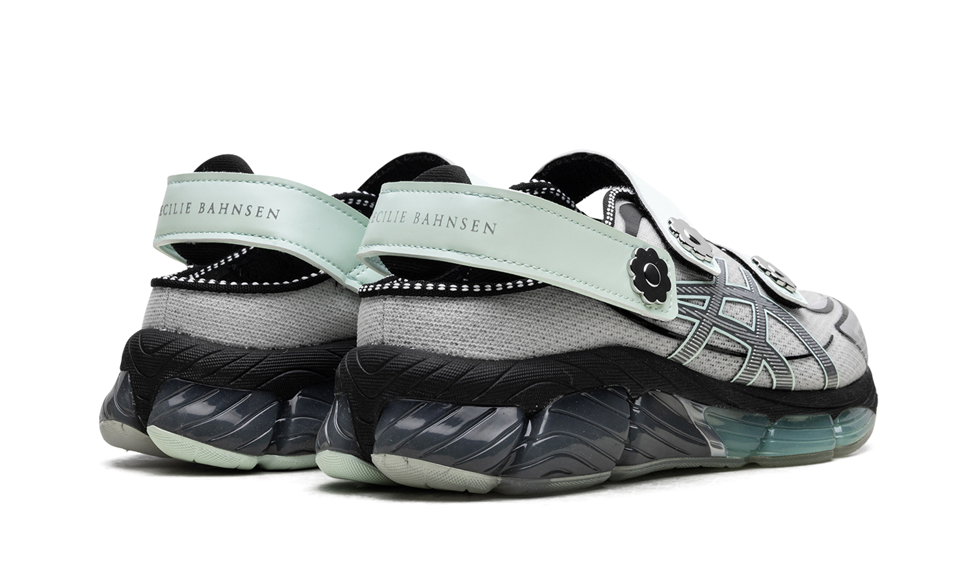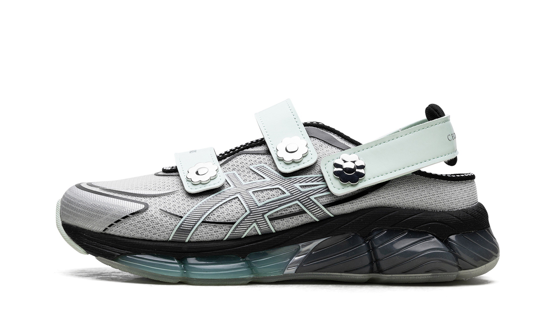 Dare to fuse performance with high fashion in the extraordinary ASICS GEL-QUANTUM 360 VIII. a visionary collaboration known as "Cecilie Bahnsen Clearly Aqua." Cecilie Bahnsen radically reworks this technical silhouette into a unique. slip-on Mary Jane-style sandal. The silver mesh upper is accentuated by signature floral-embellished velcro straps and a custom floral-print outsole. Engineered with full GELâ„?technology and DIVISION SPACEâ„?midsole cushioning. this piece delivers ultimate comfort while making a truly distinctive statement.
