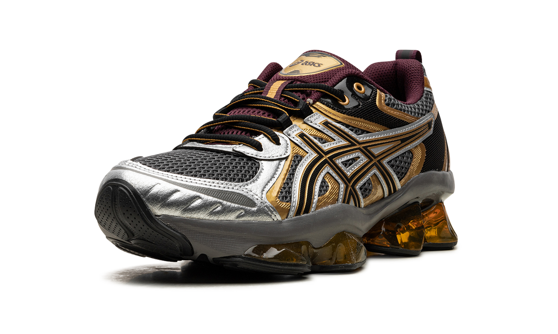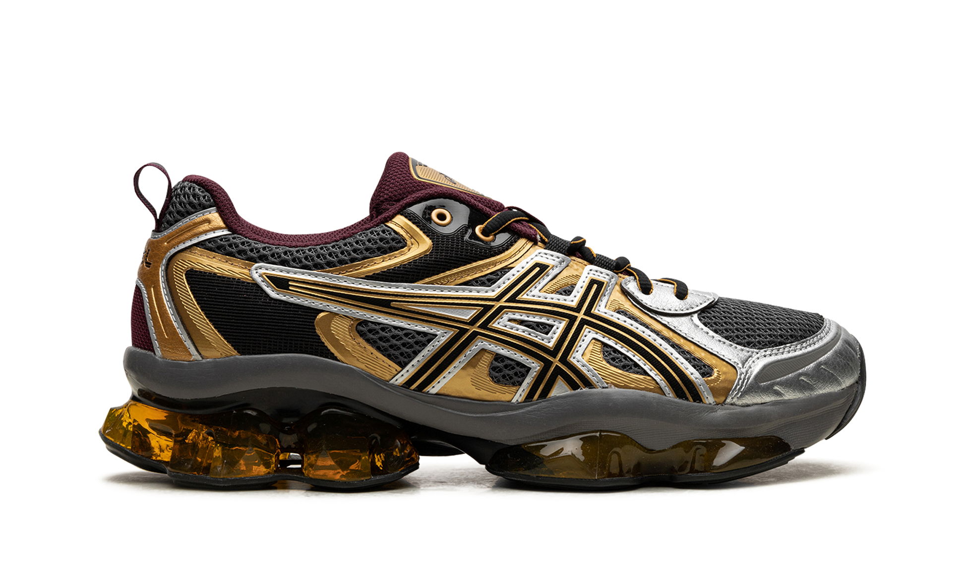 The ASICS GEL-Quantum Kinetic "Carbon/Pure Gold" is a colorway of the casual shoe loosely inspired by ASICS's work with fashion designer Kiko Kostadinov. The ASICS Gel-Quantum Kinetic features elements borrowed from the Gel-Nimbus. the Gel-Kinsei. the Gel-Kushon. and the Gel-Kinetic models. As for the “Carbon/Pure Goldâ€?colorway. the two hues across the upper along with metallic silver and maroon detailing. Underfoot. the shoe shares its sole unit with ASICS models the Gel-Quantum Zientzia and the Gel-Quantum Levitrack.