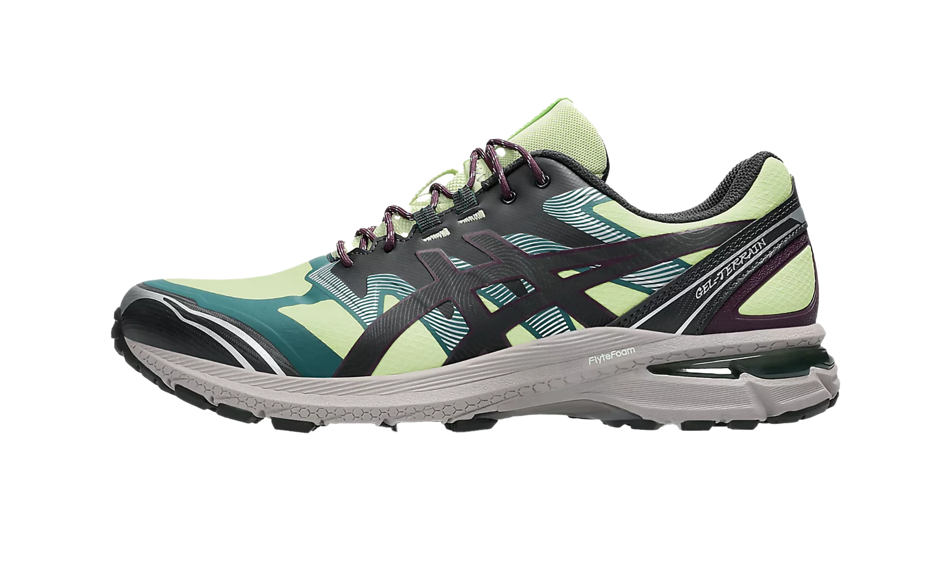 Get ready for any adventure in the technical ASICS GEL-TERRAIN 'Dark Jade Green.' Inspired by archived GEL-FUJITRABUCO trail runners. this sneaker features a rugged upper with technical welding and dynamic. no-sew lines. The deep green and black colorway brings a bold. outdoorsy vibe to your urban uniform. Equipped with a powerful combination of lightweight FLYTEFOAM and signature GEL technology. it delivers an energized. cushioned feel. making it the perfect versatile choice for traversing any terrain in comfort.