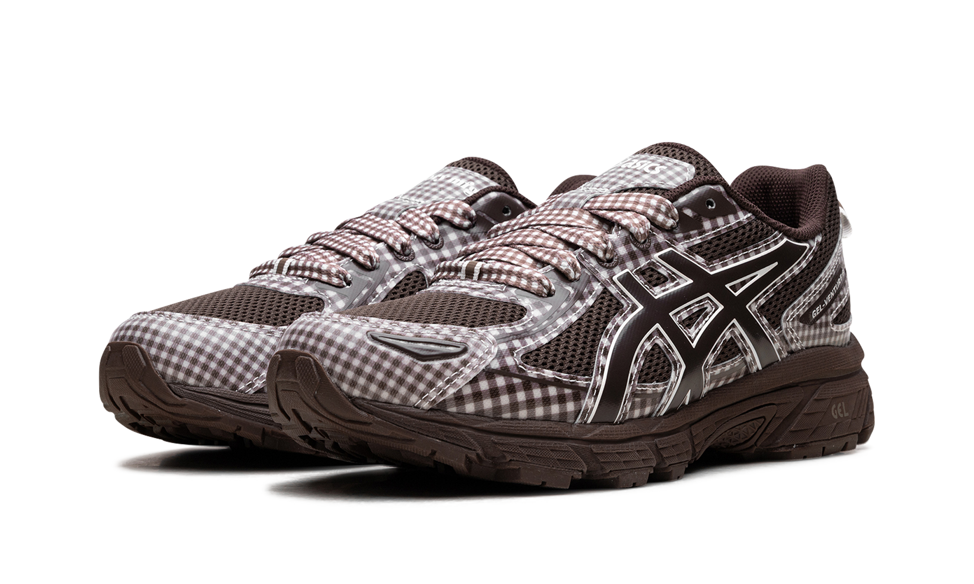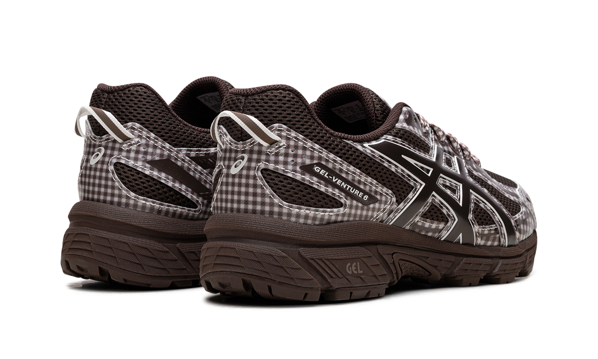 Unearth the beauty of slow-made fashion with the ASICS GEL-Venture 6 Story mfg. "Reddish Brown." This collaboration reworks the trail shoe with Story mfg.'s ethical. handcrafted aesthetic. featuring a durable mesh upper overlaid with folksy gingham check fabric and rich reddish-brown tones. Built for the urban explorer. it includes rearfoot GELâ„?technology for superior shock absorption and a specialized trail-specific outsole for confident. cushioned grip on any surface.