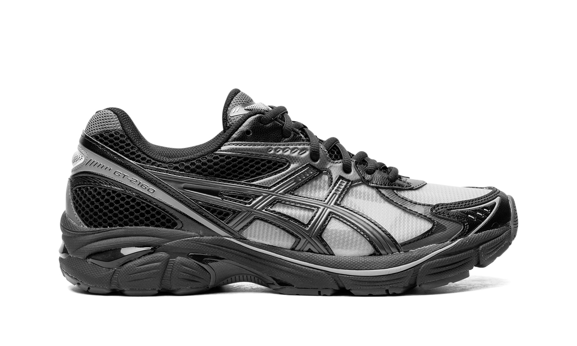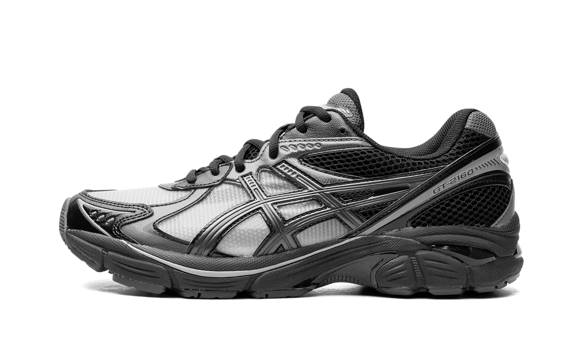 Experience a sleek and modern update to a classic silhouette with the ASICS GT-2160 "Black Gunmetal." These sneakers blend design elements from the GT-2000 series. offering a nod to early 2010s running shoe aesthetics. The "Black Gunmetal" colorway presents a sophisticated and versatile look. combining dark tones with metallic accents. Step into a shoe that offers both style and all-day comfort.