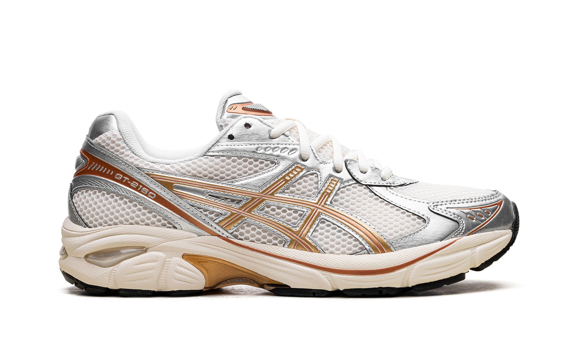 Strike gold with the limited-edition ASICS GT-2160 "atmos Medalist Pure Gold" sneaker! This coveted collaboration with the legendary Japanese boutique atmos delivers a premium. eye-catching take on the heritage runner. The shoe features a sleek Arctic Wolf and Pure Gold colorway. perfectly accentuating the technical 2010s-inspired design. Enjoy superior comfort and advanced shock absorption thanks to the signature GELâ„?technology in the segmented midsole. A must-have for collectors and those who love Y2K aesthetics.
