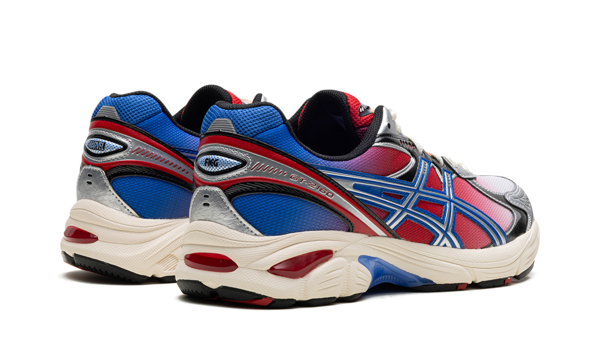 Embrace the iconic rivalry with the exclusive ASICS GT-2160 KITH MARVEL VILLAINS "Spider-Man/Venom Pack" (No Co). This set features two GT-2160 sneakers. with this listing specifically referring to the two-shoe pack. The Spider-Man model uses a red-to-blue gradient mesh upper. and the Venom shoe contrasts with dark black-to-navy tones. Both retro runners feature premium mesh. metallic silver accents. dual branding (Marvel and Fieg) and the original GELâ„?cushioning and DuoMax stability system for high-performance comfort.