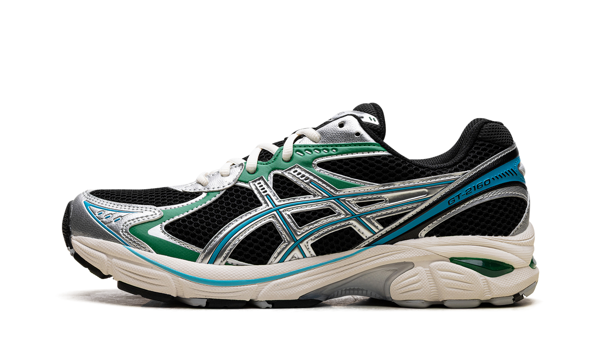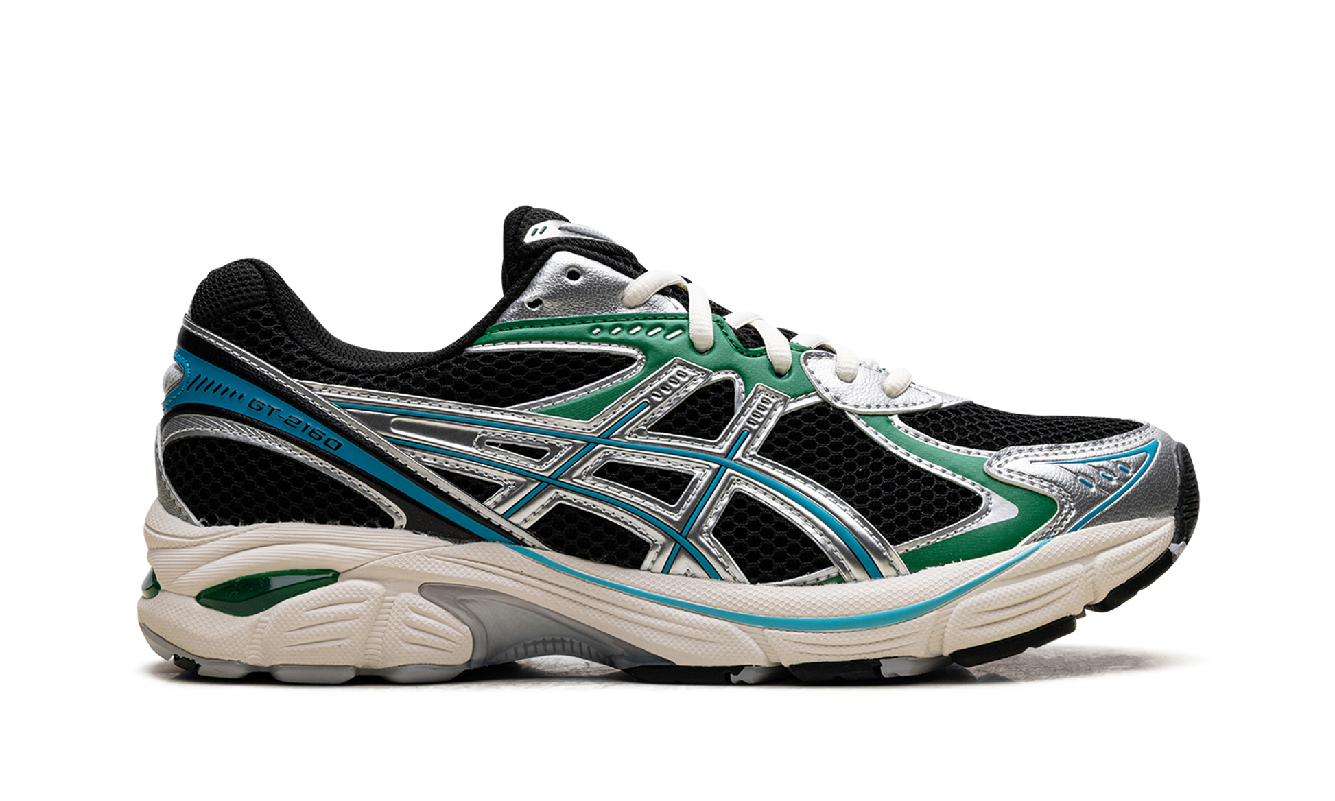 Turn heads with the vibrant contrast of the ASICS GT-2160 "Black/Morpho" sneakers! Taking cues from the vivid black morpho tetra fish. this striking colorway features a stealthy black mesh and synthetic upper highlighted by mesmerizing green and aqua accents. The design pays homage to the technical aesthetic of the GT-2000â„?series from the early 2010s. maintaining the sleek. wavy forefoot sculpting. With a segmented midsole and signature GEL technology inserts. this shoe delivers both bold visual appeal and advanced. all-day cushioned comfort.