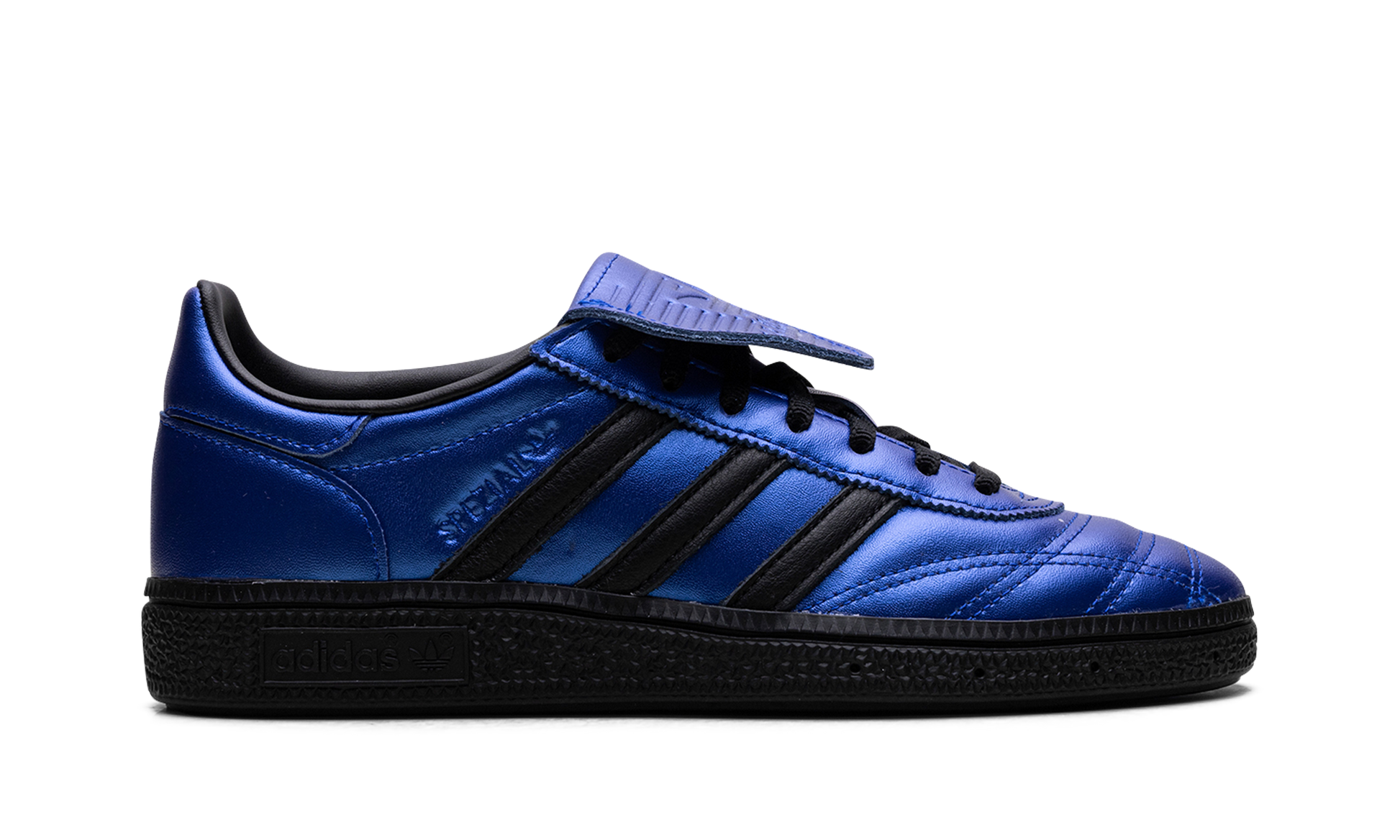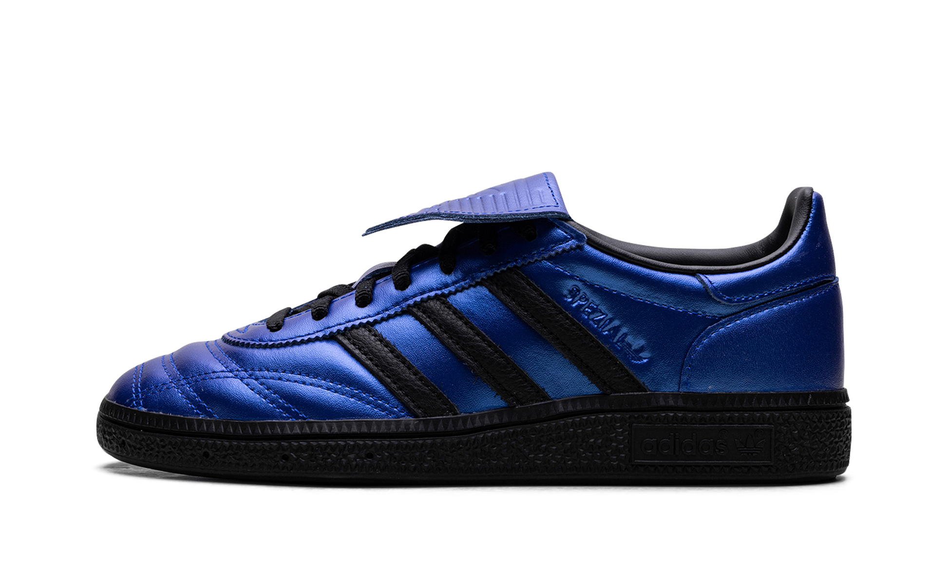 Unfold a new chapter of a classic with the Adidas Handball Spezial LT Wmns. the "Long Tongue Legend." in "Lucid Blue Black." Reimagined with a nod to vintage football boots. this women's exclusive features a soft leather upper in a metallic Lucid Blue contrasted with Core Black accents. The standout fold-over long tongue. stamped with the Trefoil logo. gives this casual favorite a distinctive. old-school twist. Step into a comfortable icon with a stylish edge.