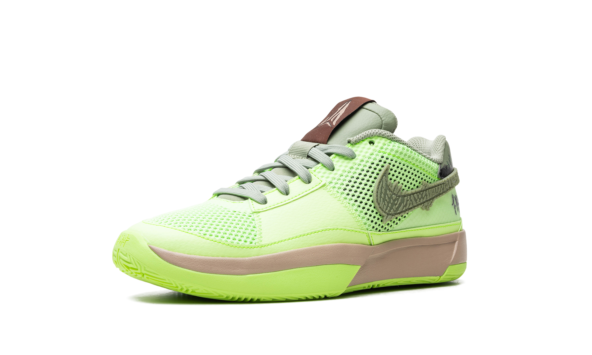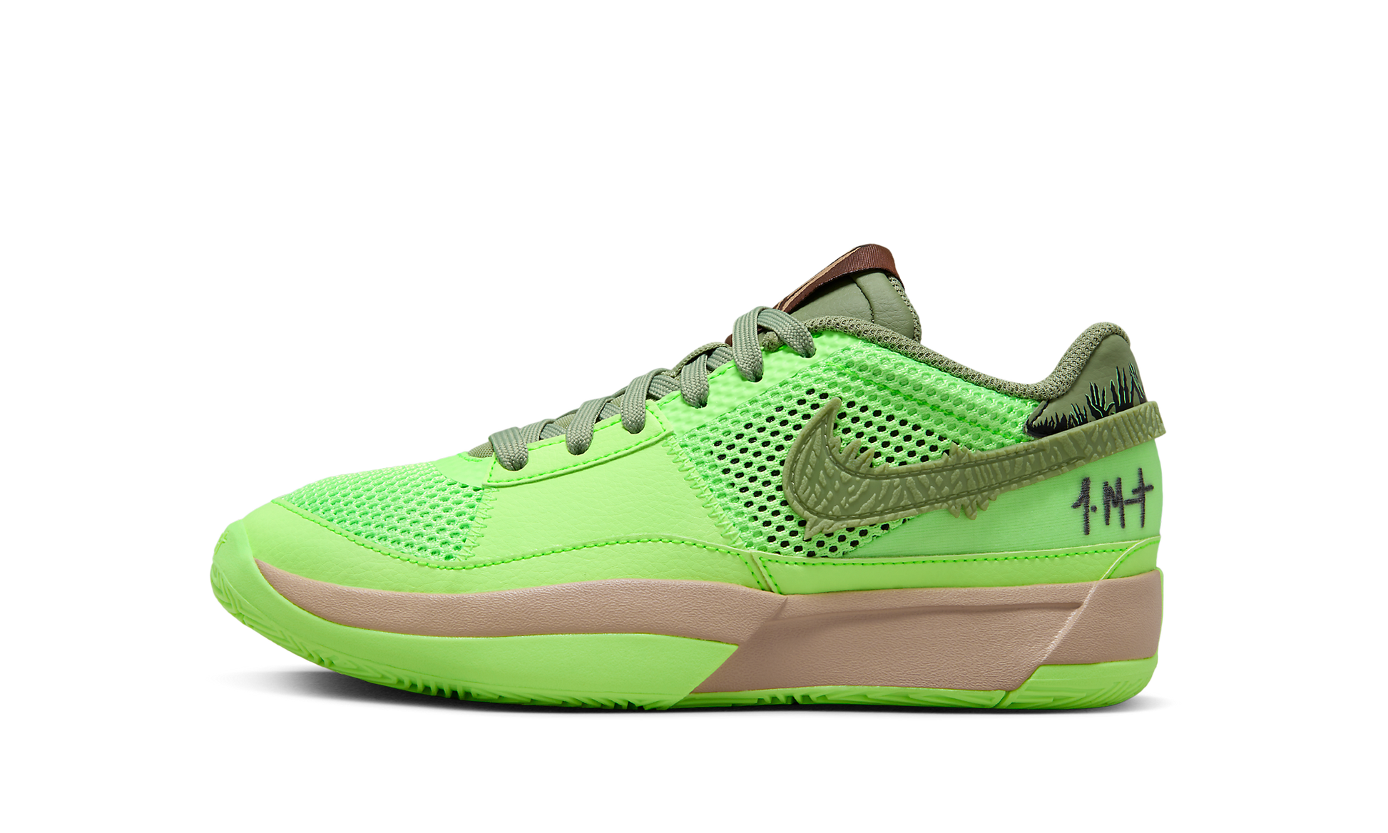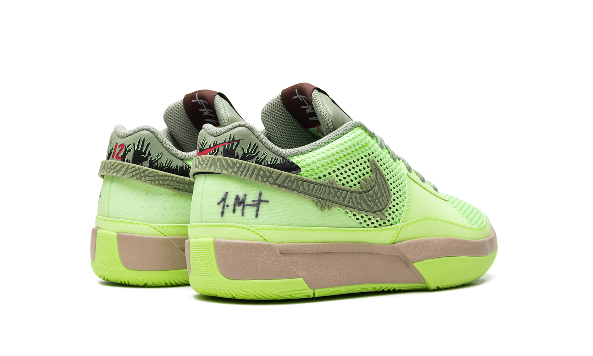The Nike Ja 1 GS “Halloweenâ€?is the youth sizing of the colorway of Ja Morant's first signature sneaker with Nike Basketball with a spooky. Halloween-inspired look. Ja Morant's high-flying. athletic style of play has made him one of the most exciting players in the NBA. In 2023. Morant received his very first signature shoe. the Nike Ja 1. Here. the performance hoops model is given a unique “Zombieâ€?makeover for Halloween. The upper features a glow-in-the-dark Lime Blast mesh and synthetic construction. An Oil Green Swoosh with “scratch markâ€?textures appears on the sides. while zombie hand graphics appear on the heel tab. Morant's signature Nike branding can be seen on the tongue while his â€?2â€?jersey number with the Memphis Grizzlies is found in red on the left heel and a Swoosh logo appears on the right heel. Release date: October 2023