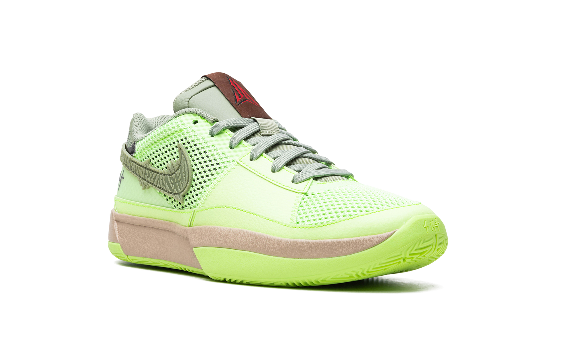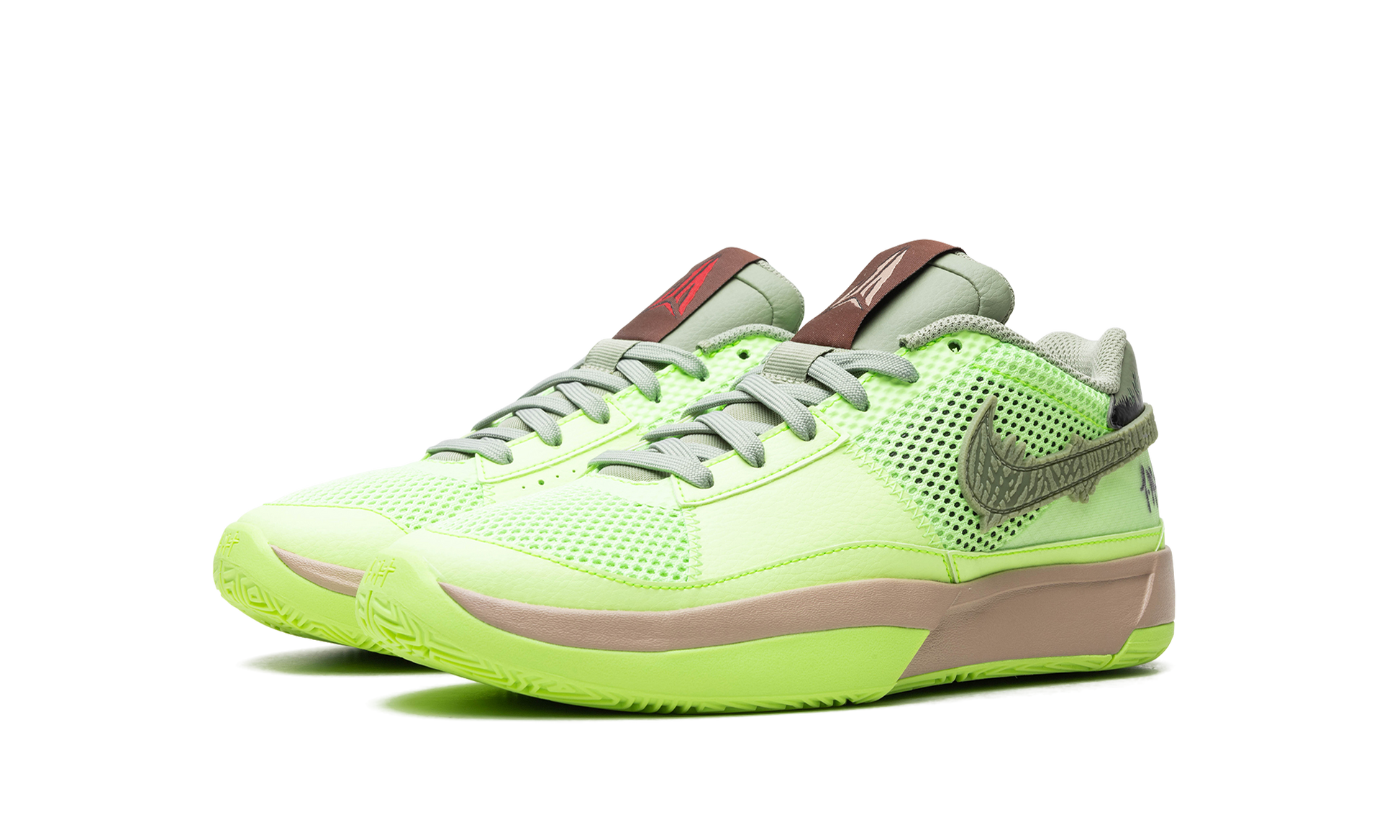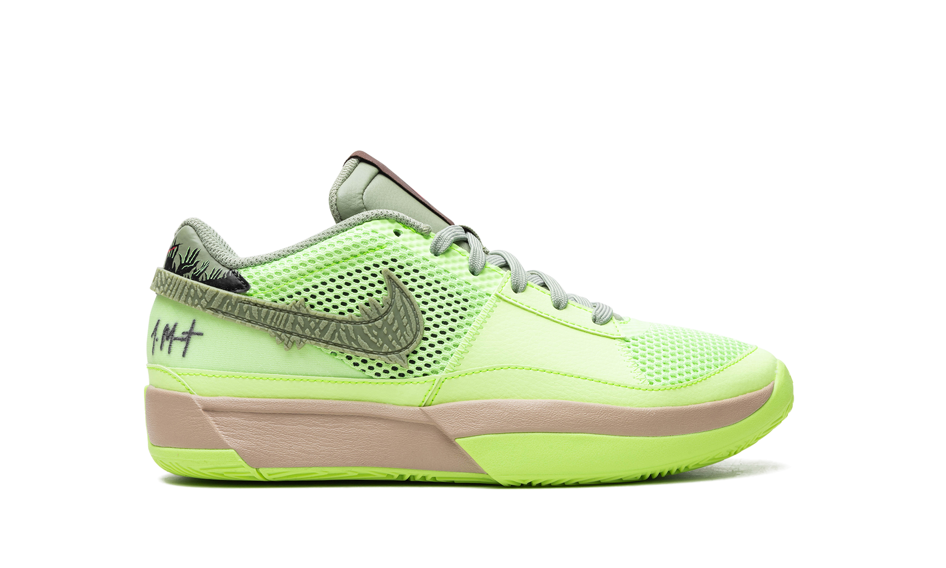 The Nike Ja 1 GS “Halloweenâ€?is the youth sizing of the colorway of Ja Morant's first signature sneaker with Nike Basketball with a spooky. Halloween-inspired look. Ja Morant's high-flying. athletic style of play has made him one of the most exciting players in the NBA. In 2023. Morant received his very first signature shoe. the Nike Ja 1. Here. the performance hoops model is given a unique “Zombieâ€?makeover for Halloween. The upper features a glow-in-the-dark Lime Blast mesh and synthetic construction. An Oil Green Swoosh with “scratch markâ€?textures appears on the sides. while zombie hand graphics appear on the heel tab. Morant's signature Nike branding can be seen on the tongue while his â€?2â€?jersey number with the Memphis Grizzlies is found in red on the left heel and a Swoosh logo appears on the right heel. Release date: October 2023