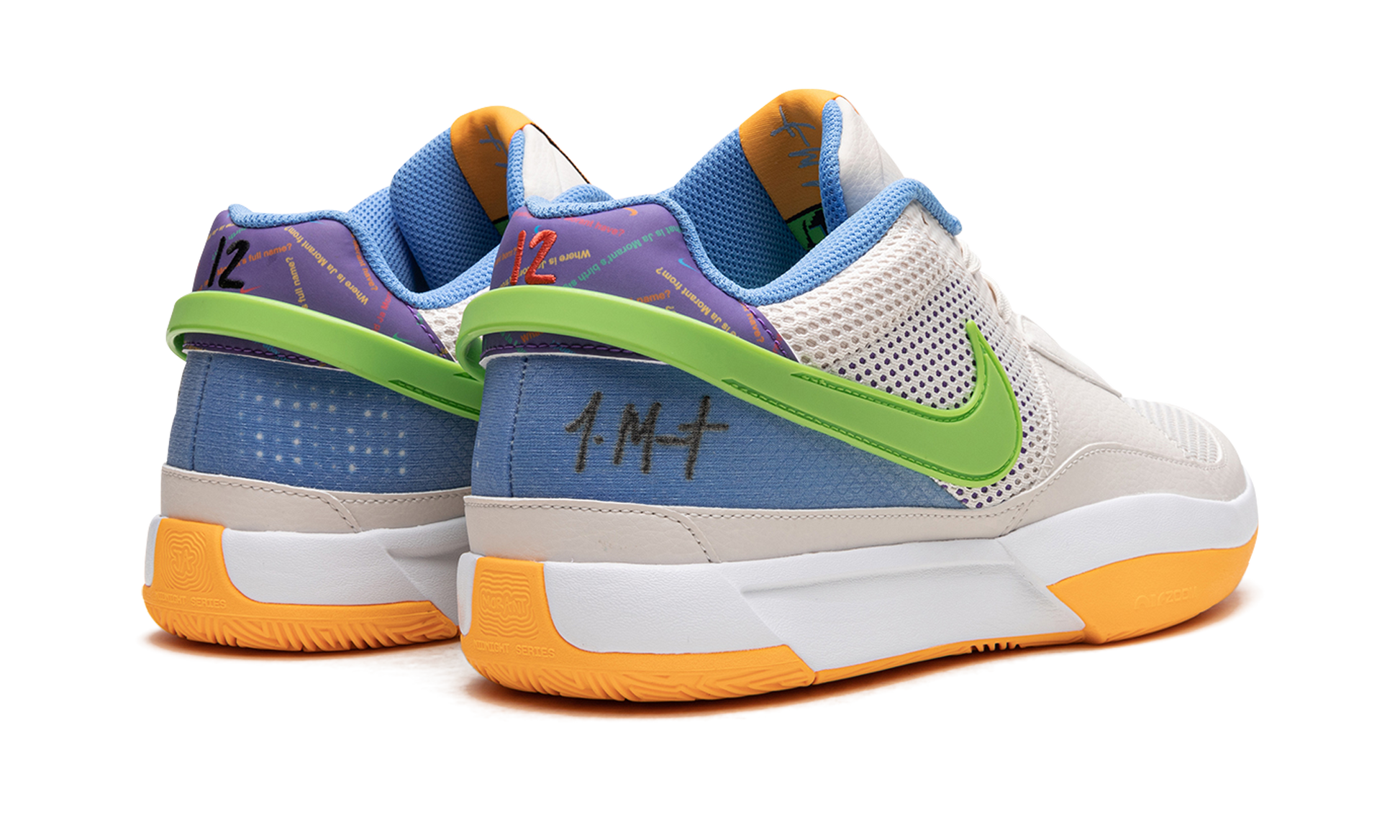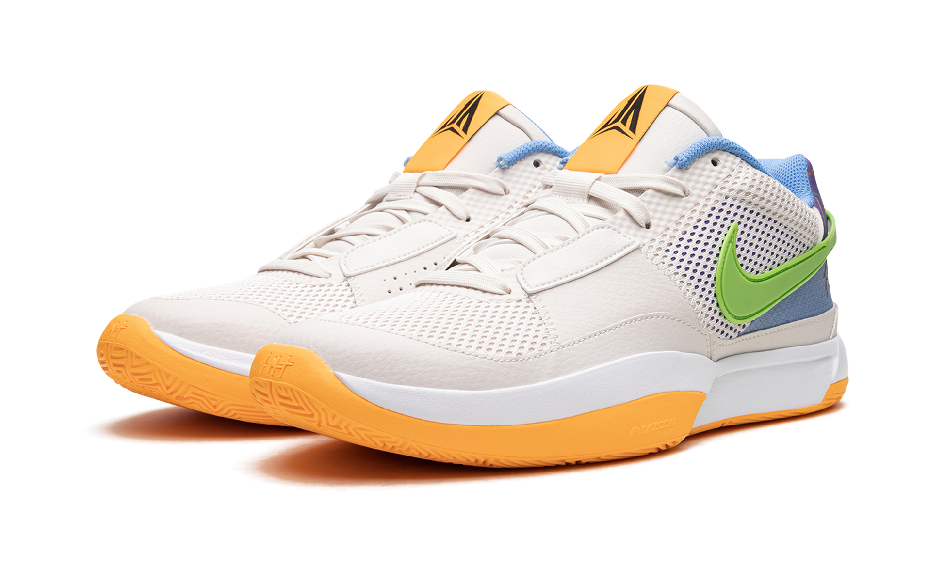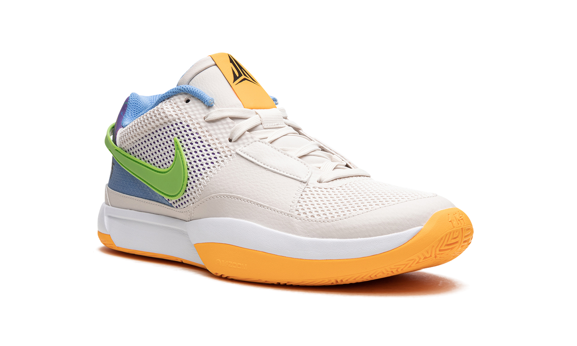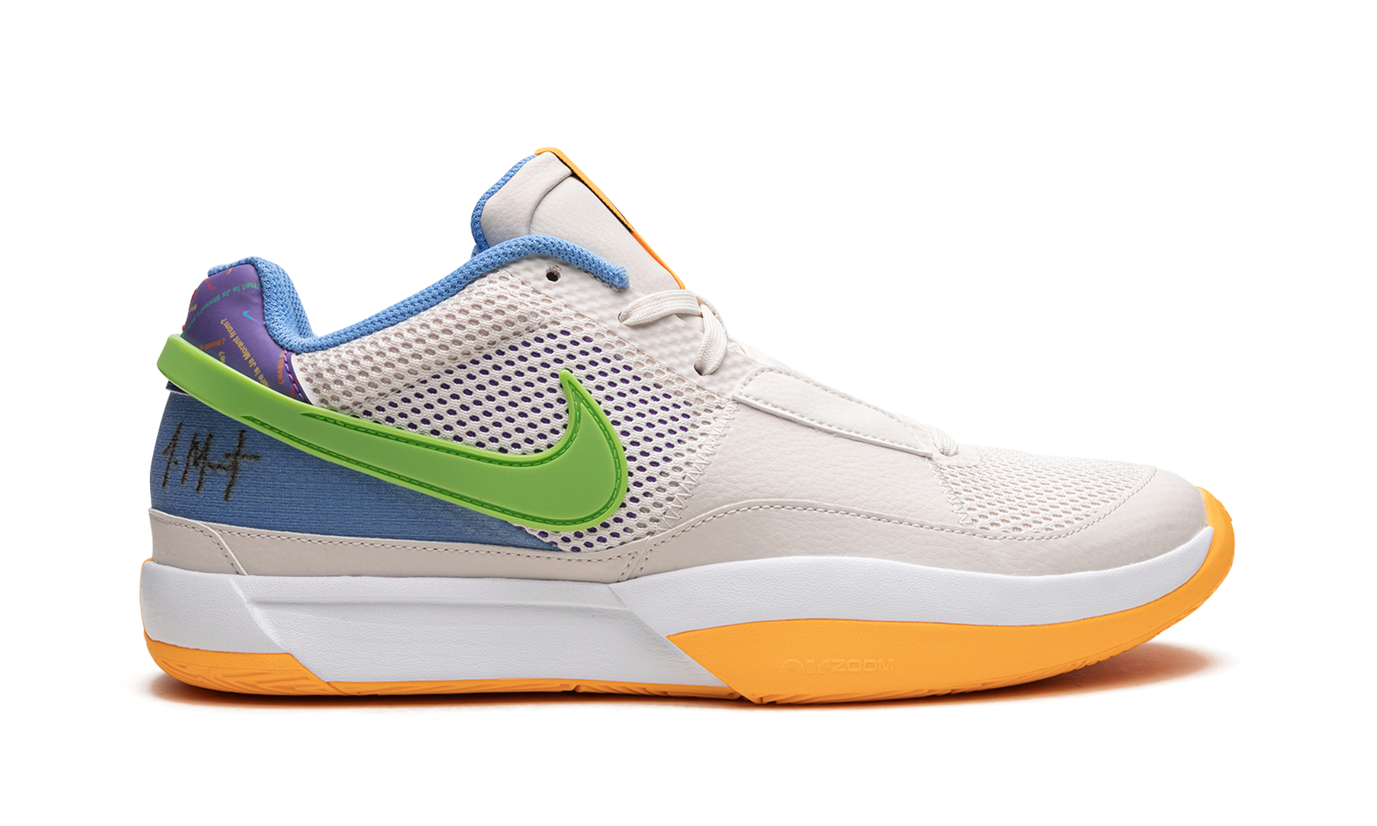 The Nike Ja 1 “Triviaâ€?is an original colorway of Ja Morant's first signature shoe with Nike Basketball. Ja Morant. one of the most exciting and athletic players in the NBA. received his very own signature shoe with Nike Basketball in 2023. This "Trivia" or “Phantomâ€?colorway is one of the model's most hyped releases. and one of its most versatile. too. The shoe is complete with a white mesh and leather upper with both materials appearing on various points on the design. An Action Green Swoosh is found on either side of the shoe. Ja's â€?2â€?jersey number with the Memphis Grizzlies appears on the heel. Questions inspired by Ja Morant's play on the court and personal life also reside on the back of the shoe and on the insole. Release date: April 27. 2023