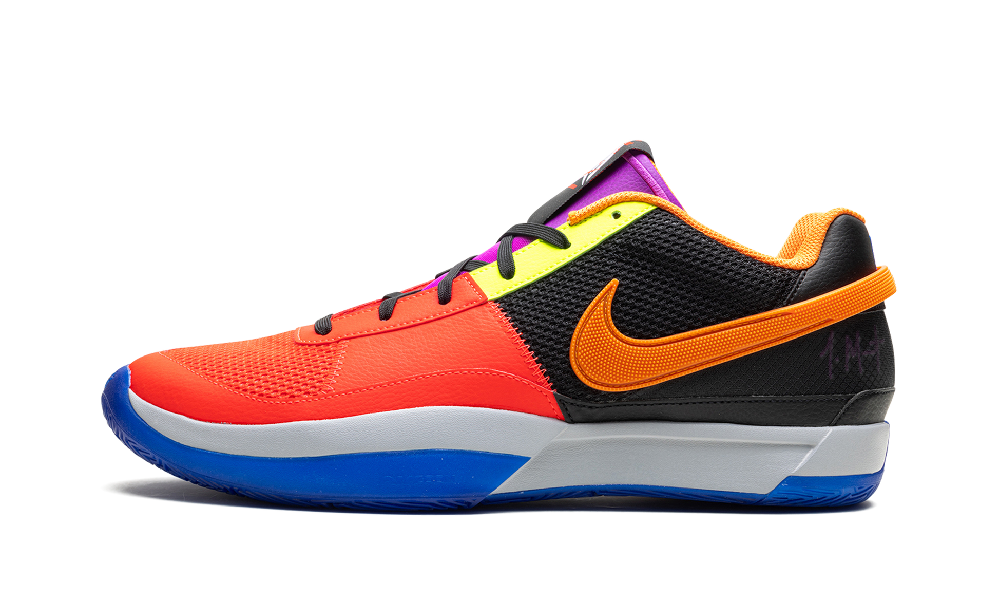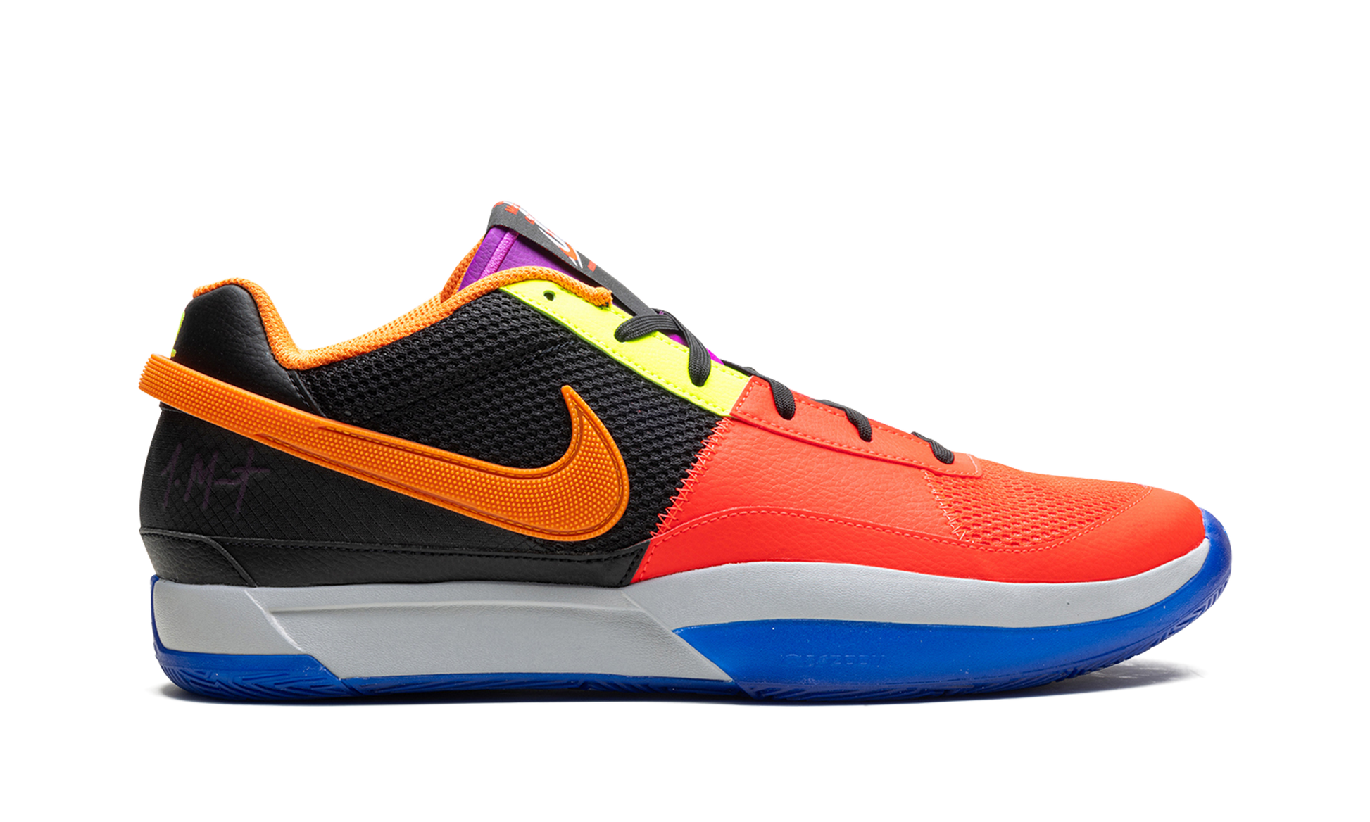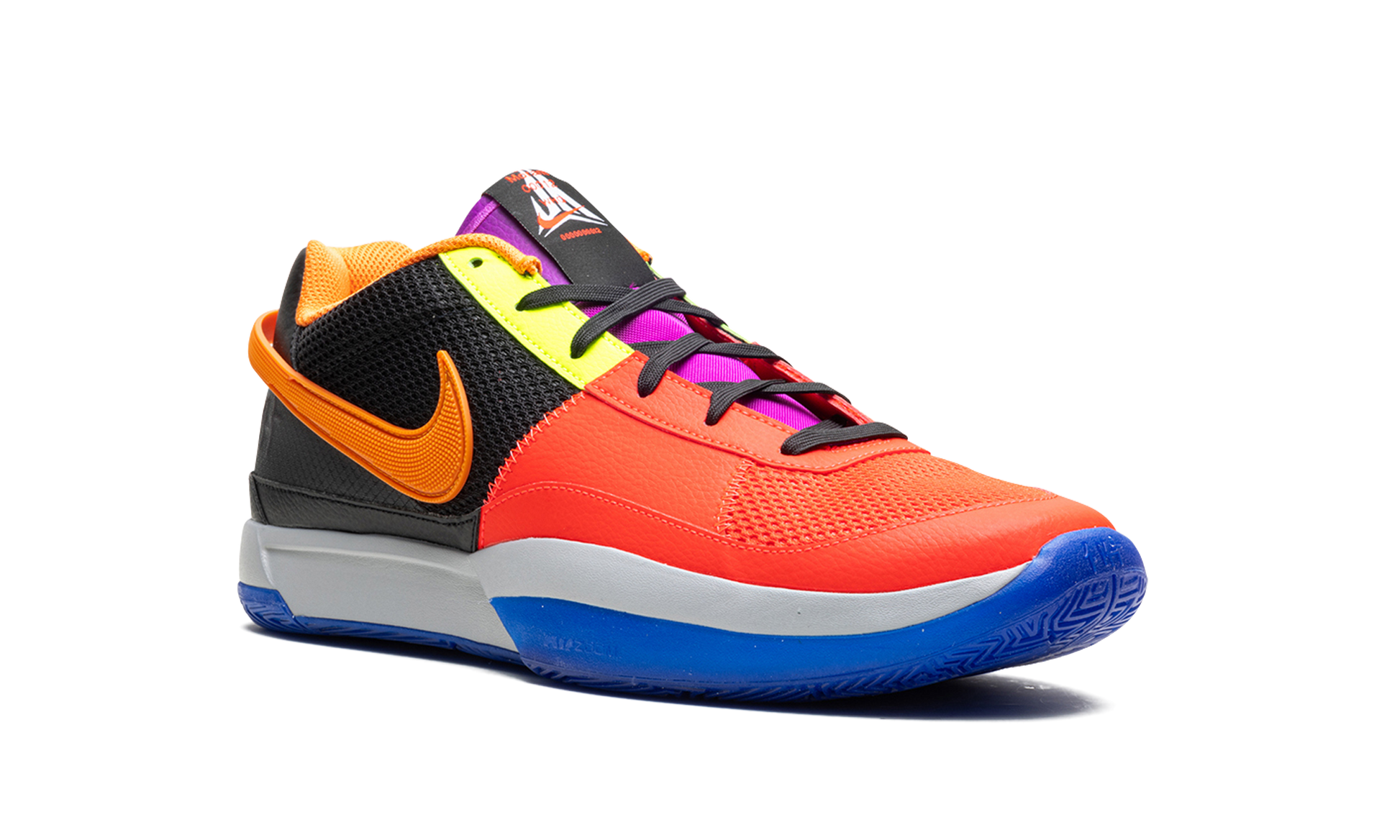 The Nike Ja 1 "Work For The Check" is the colorway of Ja Morant's first signature shoe with Nike Basketball designed in celebration of the 2024 NBA All-Star Game. Also known as the “All-Starâ€?Ja 1. the colorway features an attention-seeking color scheme. with Bright Crimson mesh appearing on the toe. synthetic leather midfoot panel. and vamp. and black mesh appearing on the heel. An eye-catching Volt hue is seen on the upper eyelet panel. Morant's signature branding appears on the purple tongue and Mandarin Swooshes are seen on either side. The basketball star's â€?2â€?jersey number with the Memphis Grizzlies is displayed in Racer Blue and Volt on the back of the left and right shoe. respectively. Underfoot. an inspirational quote is found underneath the translucent blue rubber outsole. Release date: February 16. 2024