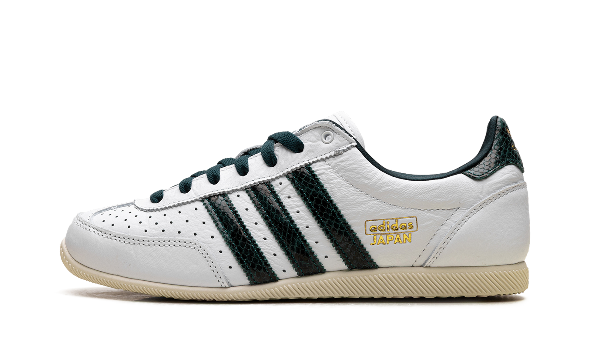 Capture timeless 70s track style with the Adidas Japan Wmns "FTW White/Collegiate Green." This sleek. retro-inspired runner features a clean white leather upper paired with vibrant Collegiate Green accents on the serrated 3-Stripes and heel tab. The low-profile design is rooted in Adidas's rich athletic history. providing a versatile. comfortable shoe for everyday wear. Finished with a durable rubber outsole. the "Japan" is the perfect classic sneaker to effortlessly complete any casual look.