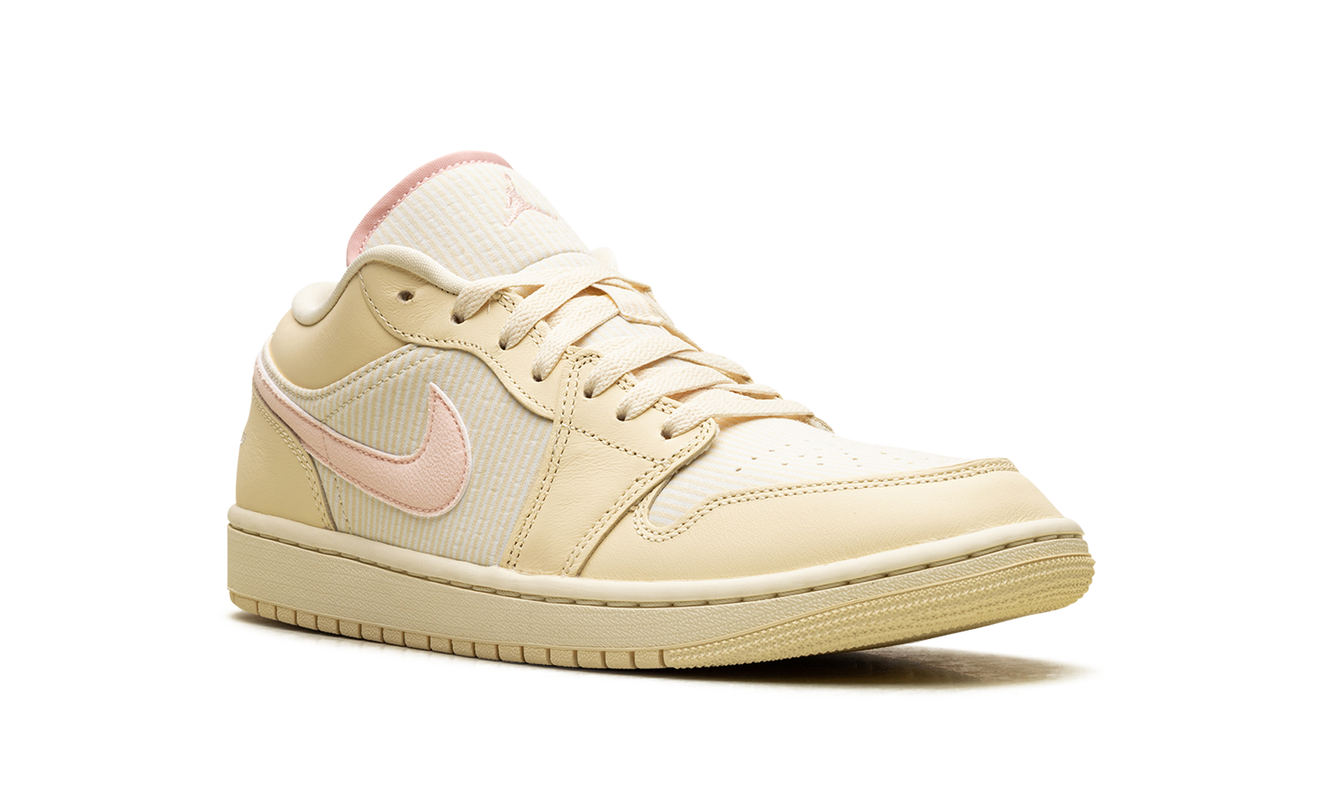 Step into effortless summer elegance with the Jordan 1 Low SE WMNS "Seersucker." This unique low-top swaps traditional leather for breathable. crinkled seersucker cotton across the upper and tongue. perfect for warmer weather. The dreamy Muslin. Coconut Milk. and Legend Pink colorway creates a light. airy aesthetic. With classic Air cushioning underfoot and iconic Jumpman branding. this special edition offers a luxe. breezy texture that instantly elevates your seasonal streetwear.