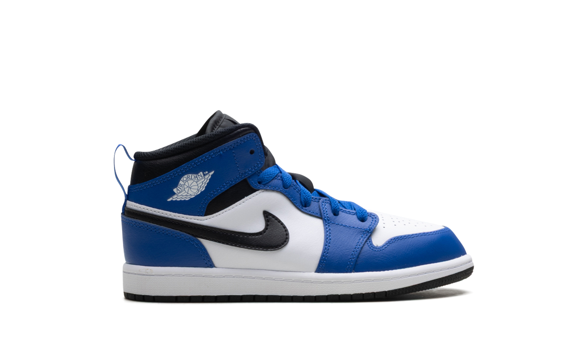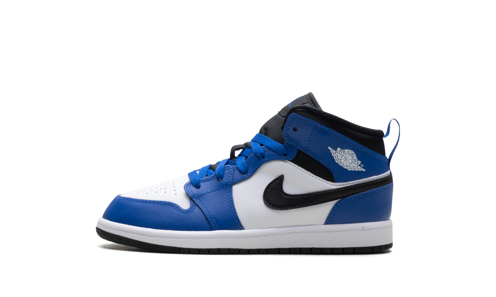 Start your little one's collection with the iconic Jordan 1 Mid PS. nicknamed "Game Royal." This pre-school sneaker brings the legendary style of Michael Jordan's first signature shoe to smaller feet. It features the classic mid-top silhouette and is crafted with a bold "Game Royal" colorway. offering a vibrant. premium look. The durable construction and comfortable fit are perfect for active kids. ensuring they stay stylish while jumping and playing. Get them soaring high with this essential piece of sneaker history!