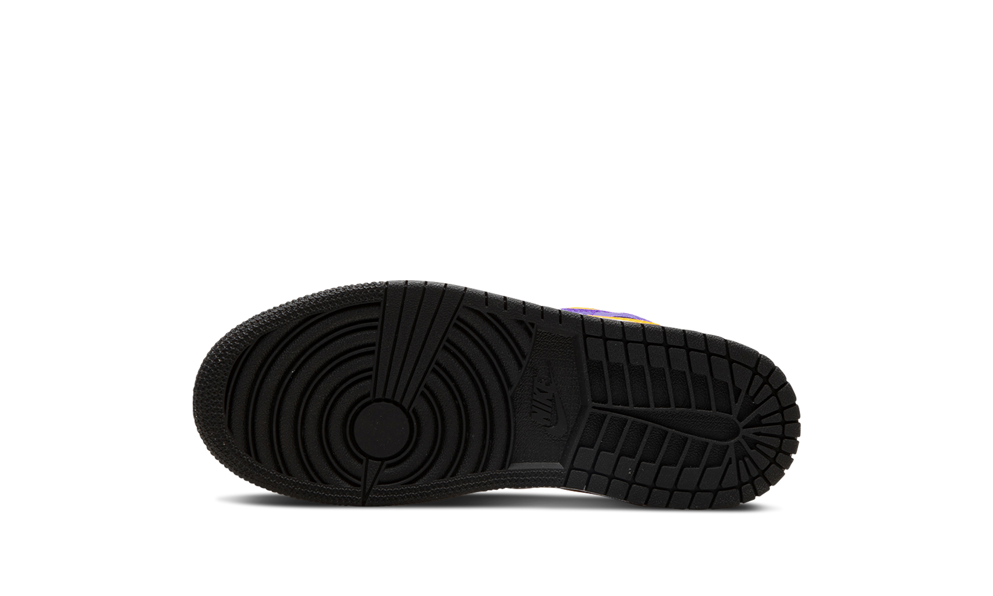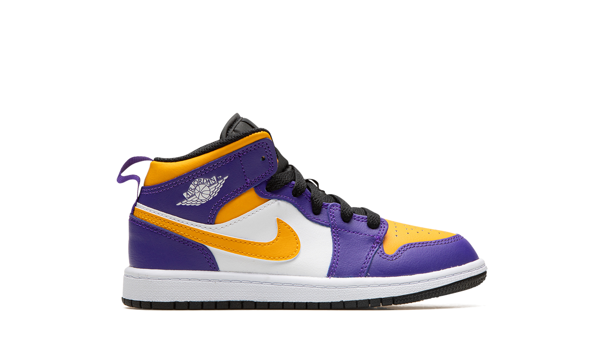 The Air Jordan 1 Mid “Lakersâ€?is the preschool sizing of the mid-top shoe inspired by the Los Angeles Lakers. Not officially affiliated with the Lakers. the Jordan 1 Mid is nonetheless outfitted in the team colors of the team Michael Jordan and the Chicago Bulls defeated in the 1991 NBA Finals. and it certainly doesn't disappoint. The Jordan 1 Mid for kids features yellow leather on its perforated toe while white leather is found on the mid-panel. The overlay panels are designed in Dark Concord leather. A yellow Swoosh is found on both sides. A purple pull tab and purple laces are added to complete the Lakers look.