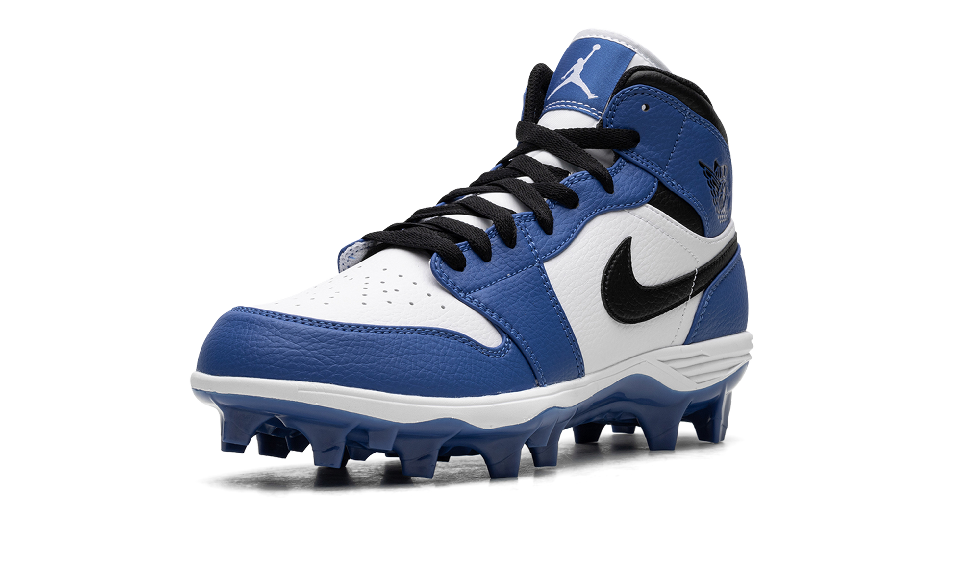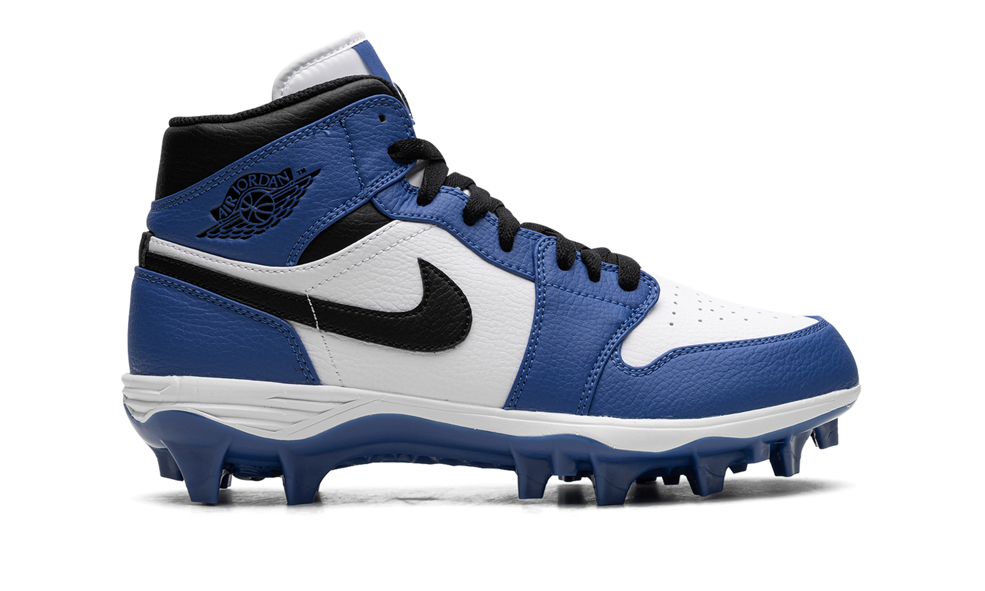 The Air Jordan 1 Mid Football Cleat “White/Black/Royalâ€?is a version of the lifestyle shoe made for the football field. The Jordan 1 Mid Football Cleat in the “White/Black/Royalâ€?colorway features a cleat-style outsole that provides traction on the football field. As for the rest of the design. the shoe has a white leather base with Royal leather overlays and a black leather Swoosh. A black “Wingsâ€?logo is seen on the collar. A white Jumpman appears on the tongue.