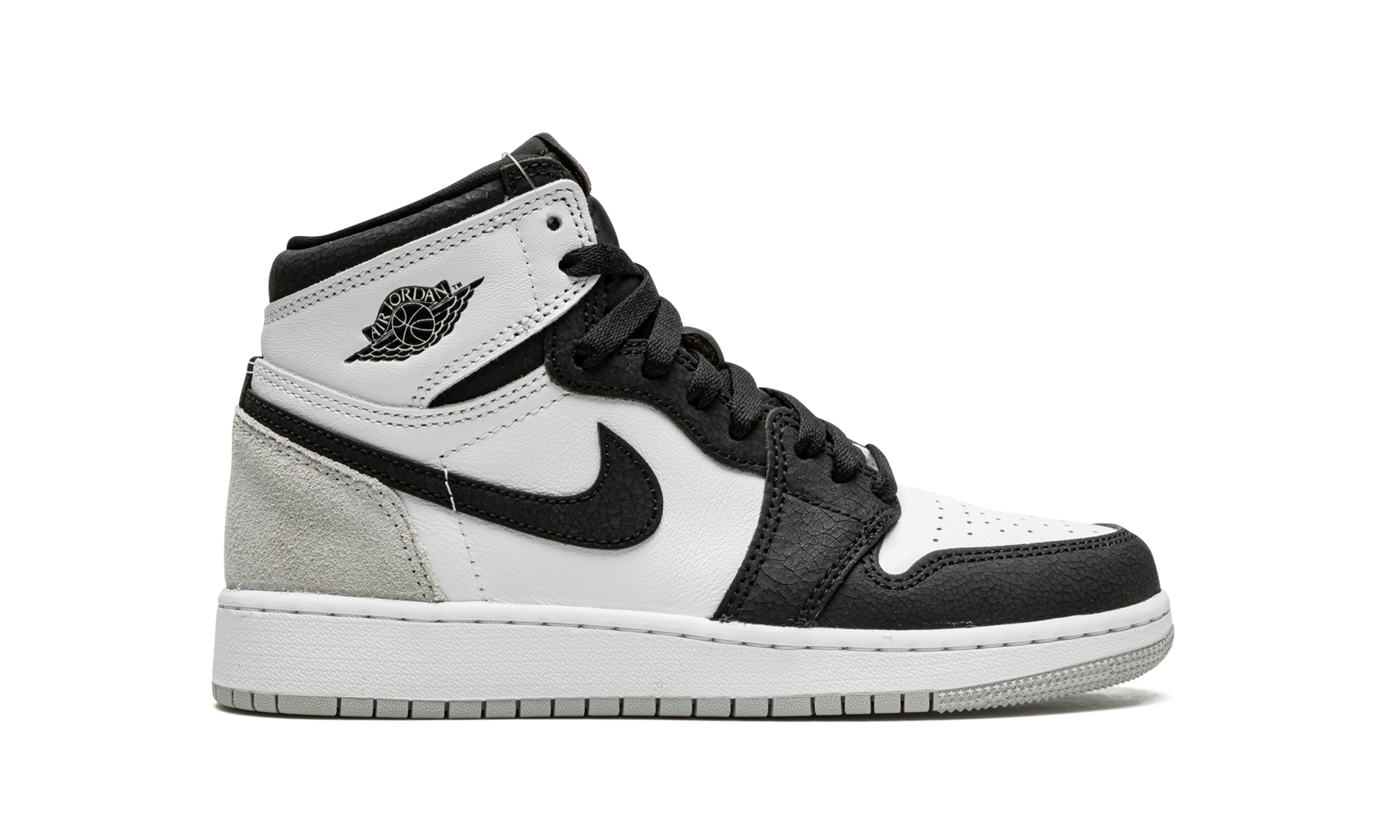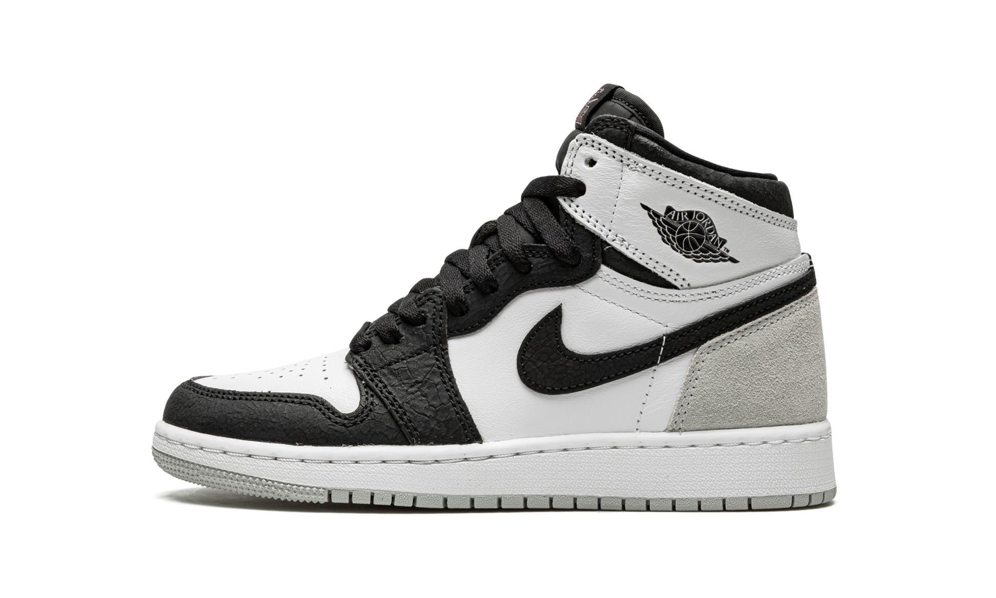 The Air Jordan 1 High OG GS “Stage Hazeâ€?is the youth sizing for the neutral based colorway of Michael Jordan's first signature shoe. The “Stage Hazeâ€?is a versatile makeup of the vintage basketball shoe that was released as part of Jordan Brand's Spring and Summer 2022 collection. Its design is complete with a white leather base with a black leather Swoosh on either side. Black textured leather appears on the toe cap. forefoot. eyelets. and collar. The heel panel features a plush light grey suede material. A black “Wingsâ€?logo is found on the collar. Additional branding comes into play on the tongue tag with a pink outline “Nike Airâ€?logo. Release date: June 8. 2022