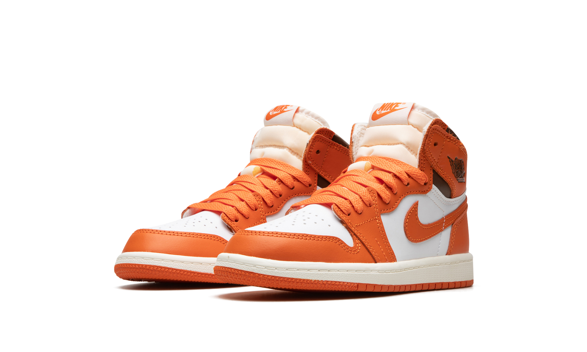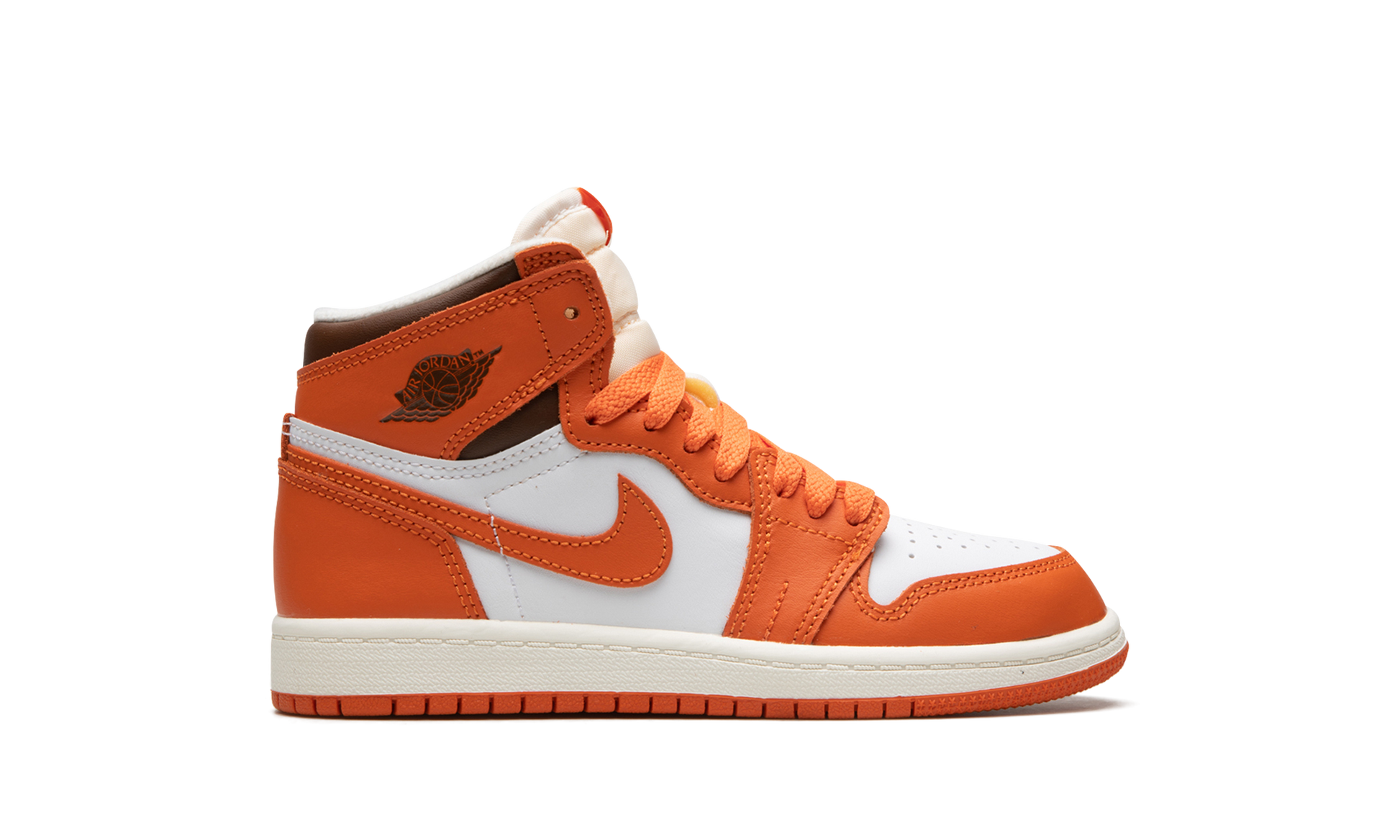 The Air Jordan 1 High OG PS “Starfishâ€?is the preschool sizing of the classic basketball and lifestyle shoe with autumn-inspired orange overlays. Yet another clean. wearable colorway for the Air Jordan 1 High OG model. the “Starfishâ€?features a white leather base with Starfish-colored leather overlays and Swoosh branding. A brown “Wingsâ€?logo can be found on the collar. A cream nylon tongue with orange laces adds visual interest to the upper. Underfoot. a white rubber midsole and Starfish outsole complete the look. Release date: October 27. 2022