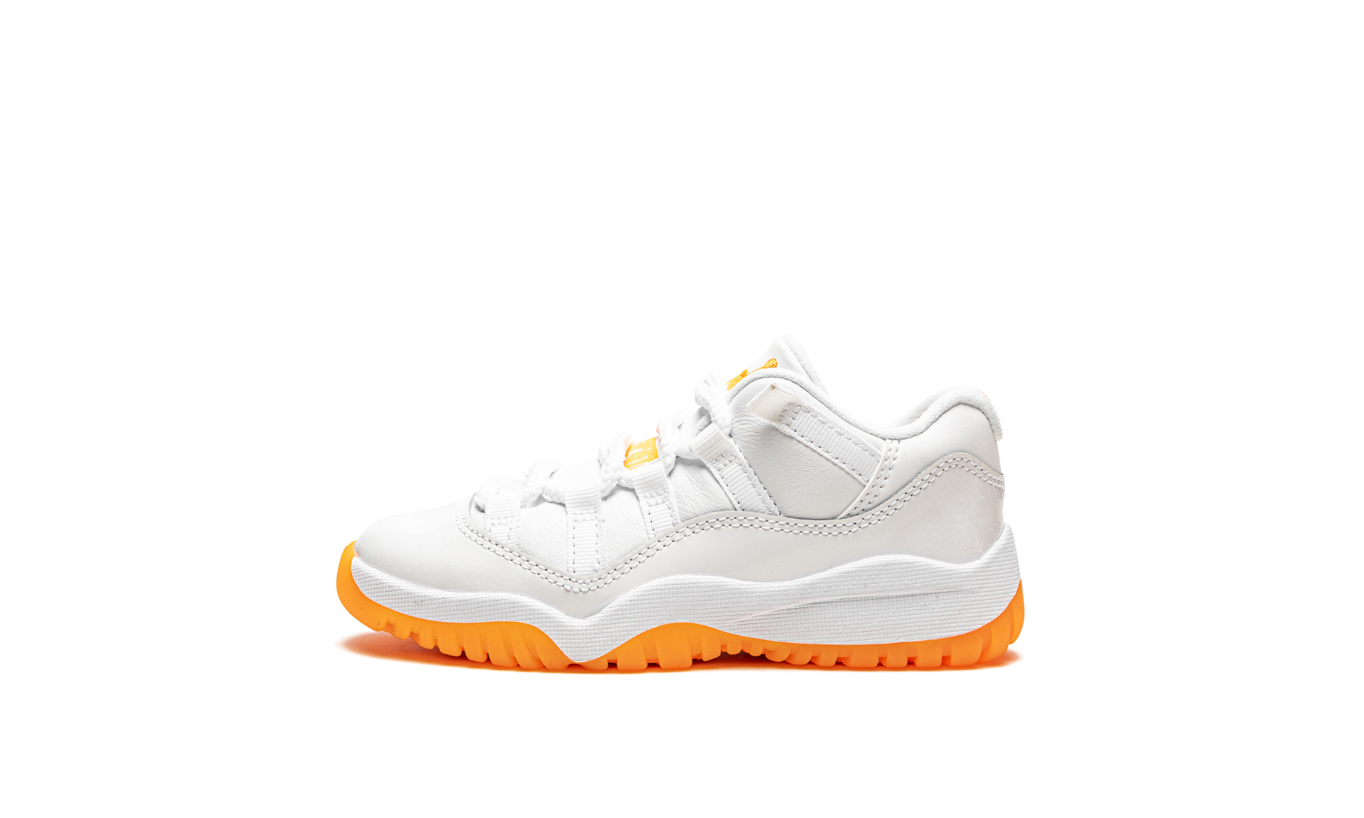 The Jordan 11 Low PS “Bright Citrusâ€?is the preschool version of the colorway of Michael Jordan's eleventh signature shoe that was originally released in 2001. One of the first non-original Air Jordan 11 colorways. the “Bright Citrus.â€?or just “Citrusâ€?as it was known when it debuted. was also one of the first women's-exclusive Air Jordan colorways to release when it did so as part of Jordan's “Retro+â€?campaign. The collection saw classic Jordan models appear as “lifestyleâ€?shoes in new materials and colorways designed to be worn away from the basketball court. The minimalist look of the “Bright Citrusâ€?is highlighted by the design's white patent leather mudguard and white tumbled leather base. An orange Jumpman is embroidered on the back of the shoe beneath the orange â€?3â€?detailing on the heel. Elsewhere. an orange nylon Jordan patch appears on the middle of the white leather tongue. The semi-translucent outsole is cast in a Bright Citrus hue per the original styling of the women's-exclusive “Citrusâ€?from 2001. Release date: May 6. 2021