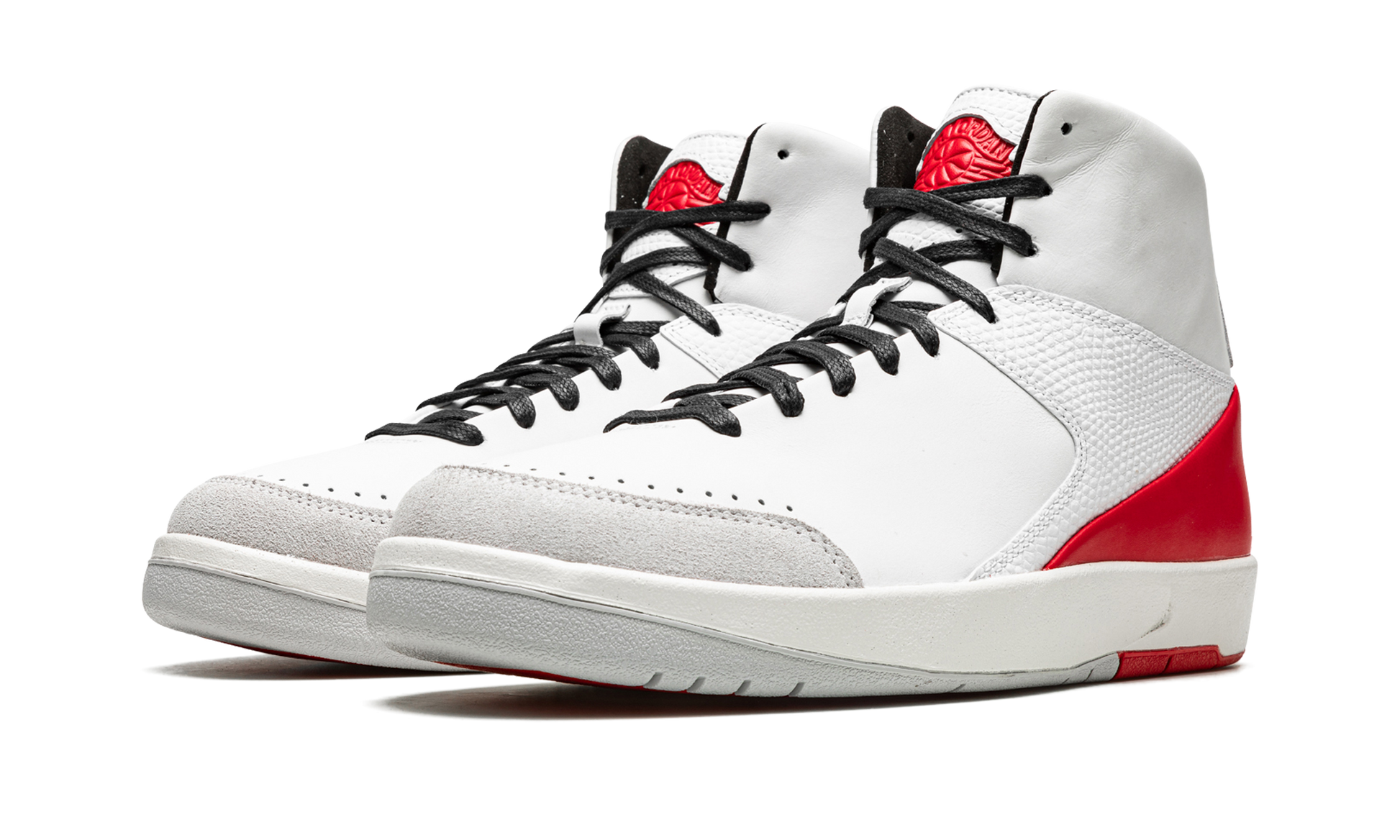 The Nina Chanel Abney x Women's Air Jordan 2 is a collaboration between the Chicago-born artist and Jordan Brand on a women's-exclusive colorway of Michael Jordan's second signature shoe. Leaning into the Air Jordan 2's original “Made in Italyâ€?design. Nina's vision of the vintage basketball shoe stays true to its luxury design roots. as well as draws inspiration from its original “Chicagoâ€?colorway. The upper features smooth white leather on the toe and mid-panel. Faux reptilian white leather can be found on the overlays and tongue. The toe features a grey suede overlay. while a fiery red overlay is found on the heel. Classic “Nikeâ€?branding is located on the heel. and a red “Wingsâ€?logo appears on the tongue. Release date: July 8. 2022