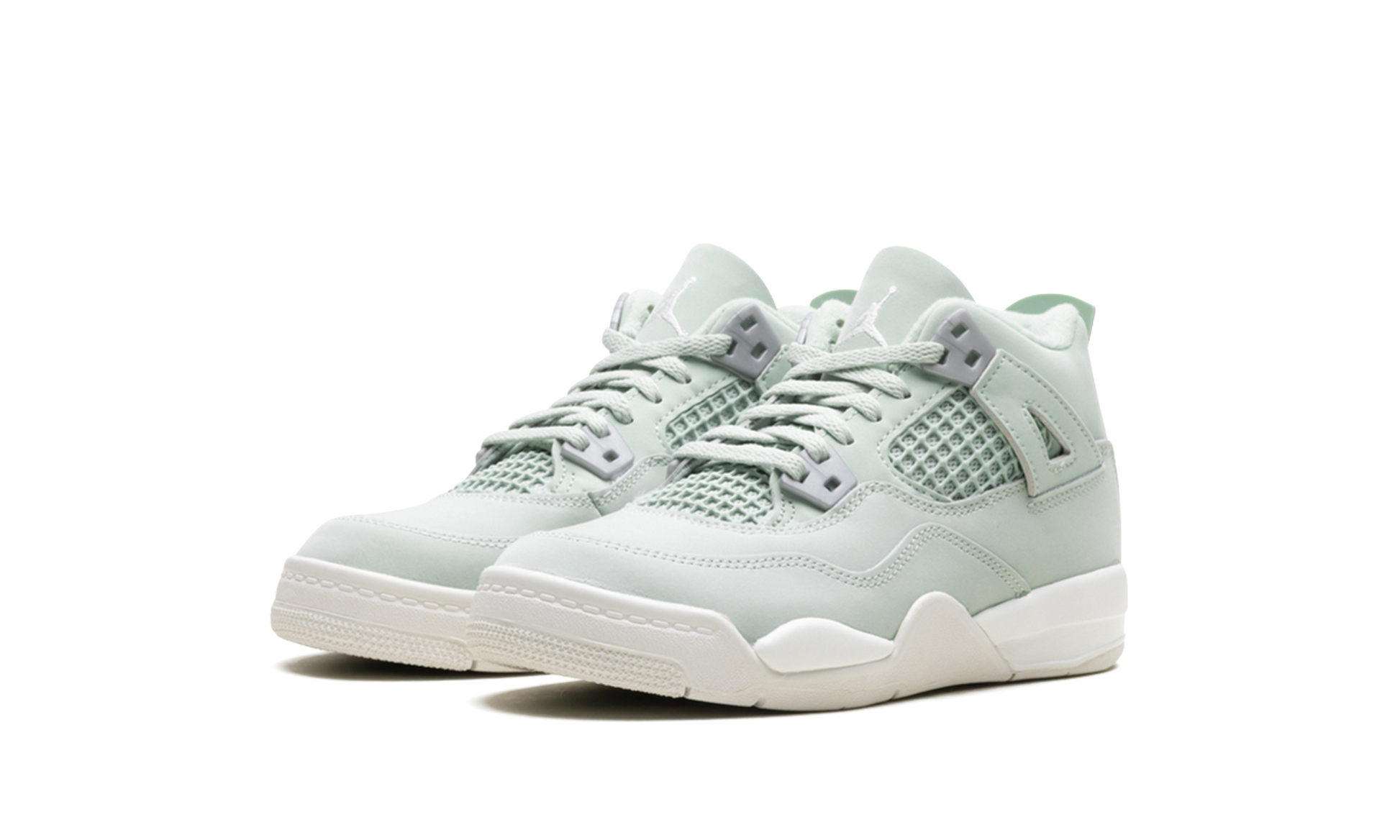 Watch your little star shine in the Jordan 4 Retro PS 'Abundance' sneaker! This Preschool edition of the legendary AJ4 brings a fresh. luxurious feel with its soft. Seafoam Green nubuck upper. Metallic Silver accents. inspired by the "Pure Money" colorway. add a brilliant pop to the molded eyelets. Built with a supportive structure and cushioned foam underfoot. this iconic shoe offers all-day comfort and a premium look for the next generation of greatness.