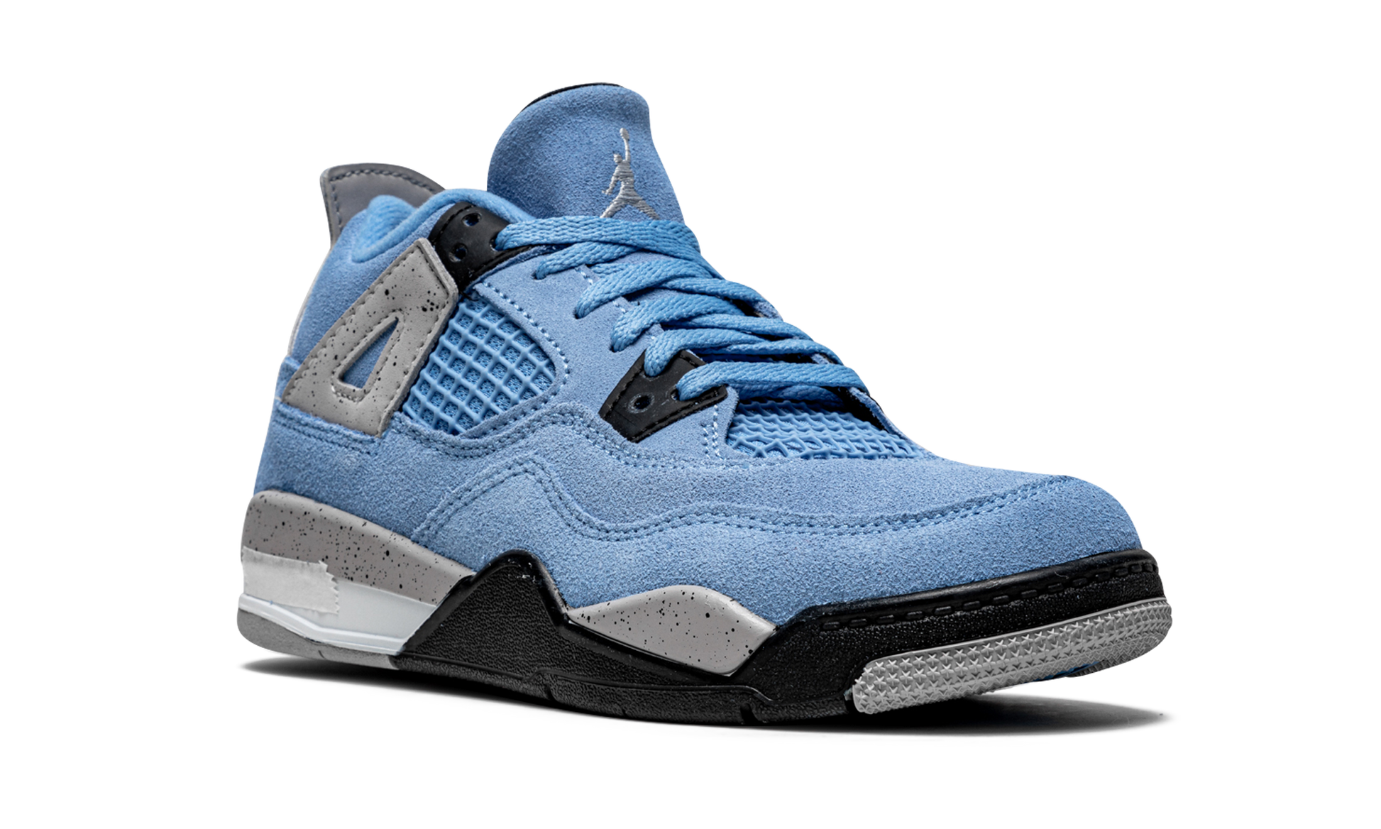 The Jordan 4 Retro PS “University Blueâ€?is the preschool sizing of the colorway that salutes Michael's alma mater. the University of North Carolina. Released by Jordan Brand for spring 2021. the “University Blueâ€?marks the first-ever Jordan 4 in a “UNCâ€?makeup. The collegiate inspired look originally debuted on the Air Jordan 1 in 1985 and was later used on models like the Air Jordan 3 and Women's Air Jordan 1 Mid in 2020. A University Blue suede construction befits the look of the upper. save for the tonal mesh detailing found on the tongue and mid-panel. Elsewhere. black plastic lace holders appear on the throat and collar. The plastic “Wingsâ€?tabs display a decidedly “Cementâ€?inspired look. The “Cementâ€?design also graces the back of the shoe with black Jumpman branding and on the mudguard. Release date: April 28. 2021.