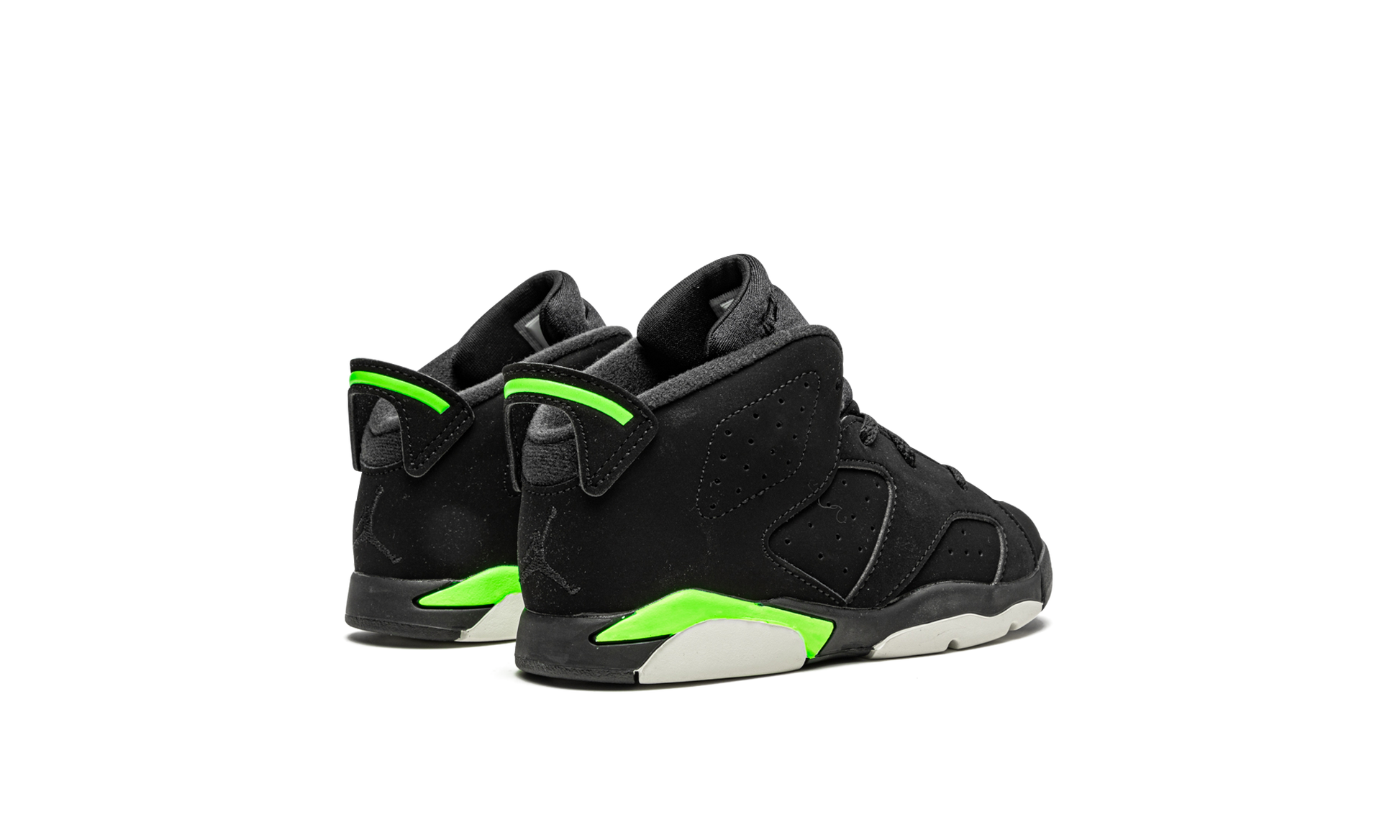The Jordan 6 TD “Electric Greenâ€?is the toddler edition of the June 2021 release by Jordan Brand that mimics the color block of a rare and unreleased Oregon Ducks Player Exclusive design. The “Electric Greenâ€?is one of several colorways of Michael Jordan's sixth signature shoe dedicated to the retro basketball model's 30-year anniversary in 2021. What's more. the “Electric Greenâ€?mimics the color block of the Jordan 6's popular “Infraredâ€?colorway. trading the latter's red accents for a bright neon shade of green. The entire upper is composed of a black synthetic nubuck material with neon green detailing on the tongue. heel tab. and midsole. A black Jumpman is embroidered onto the heel. Release date: June 5. 2021