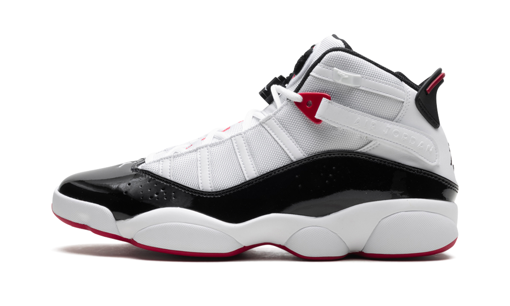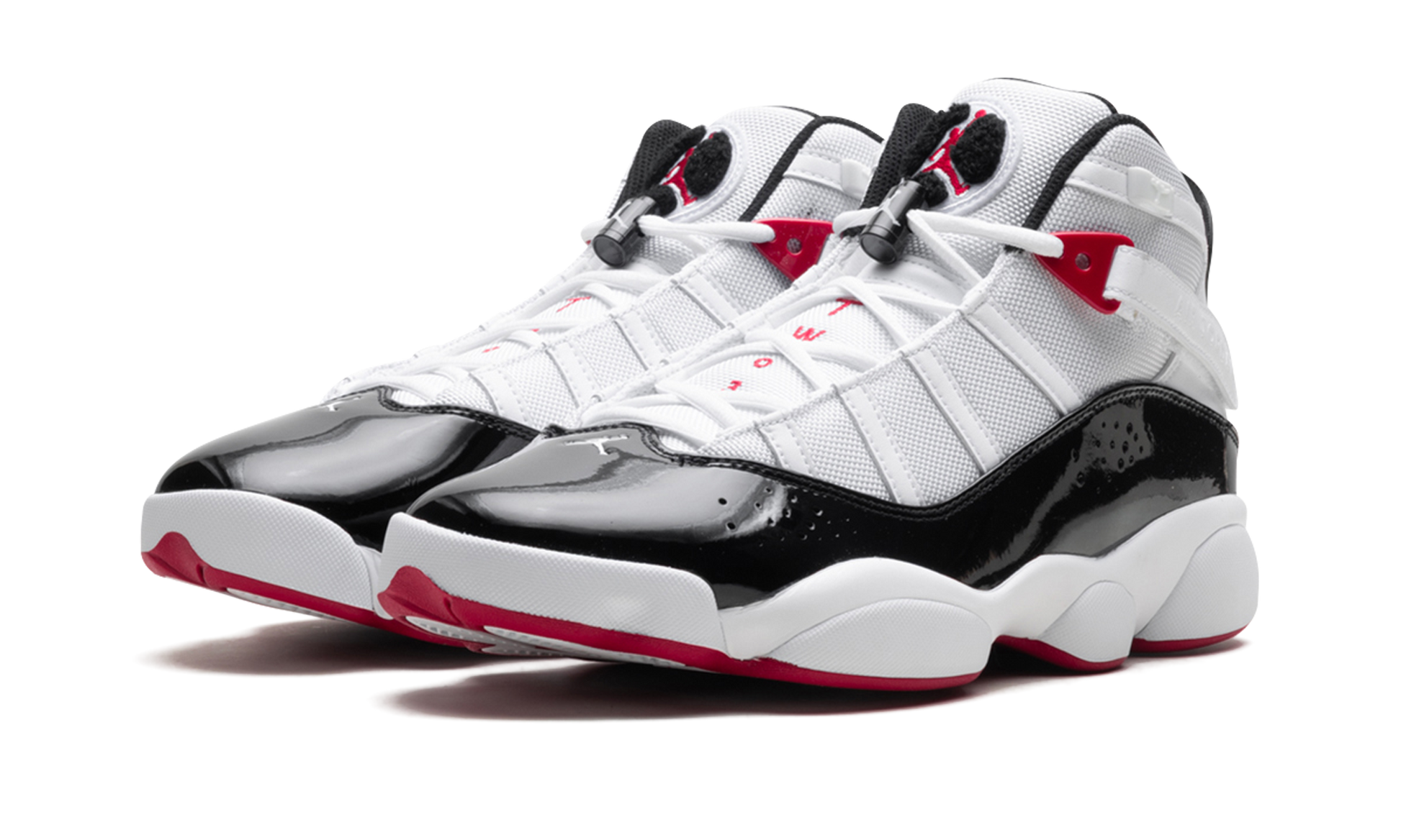Celebrate greatness with the Jordan 6 Rings "Chicago Bulls." This hybrid sneaker honors Michael Jordan's six championship rings by blending design elements from the Air Jordan models he wore during each title run. It sports the legendary White. Varsity Red. and Black "Bulls" colorway. featuring a sleek patent leather mudguard and ballistic mesh for a premium look. Zoom Air cushioning in the forefoot and heel delivers lightweight. responsive comfort. capturing a piece of basketball history with every step.