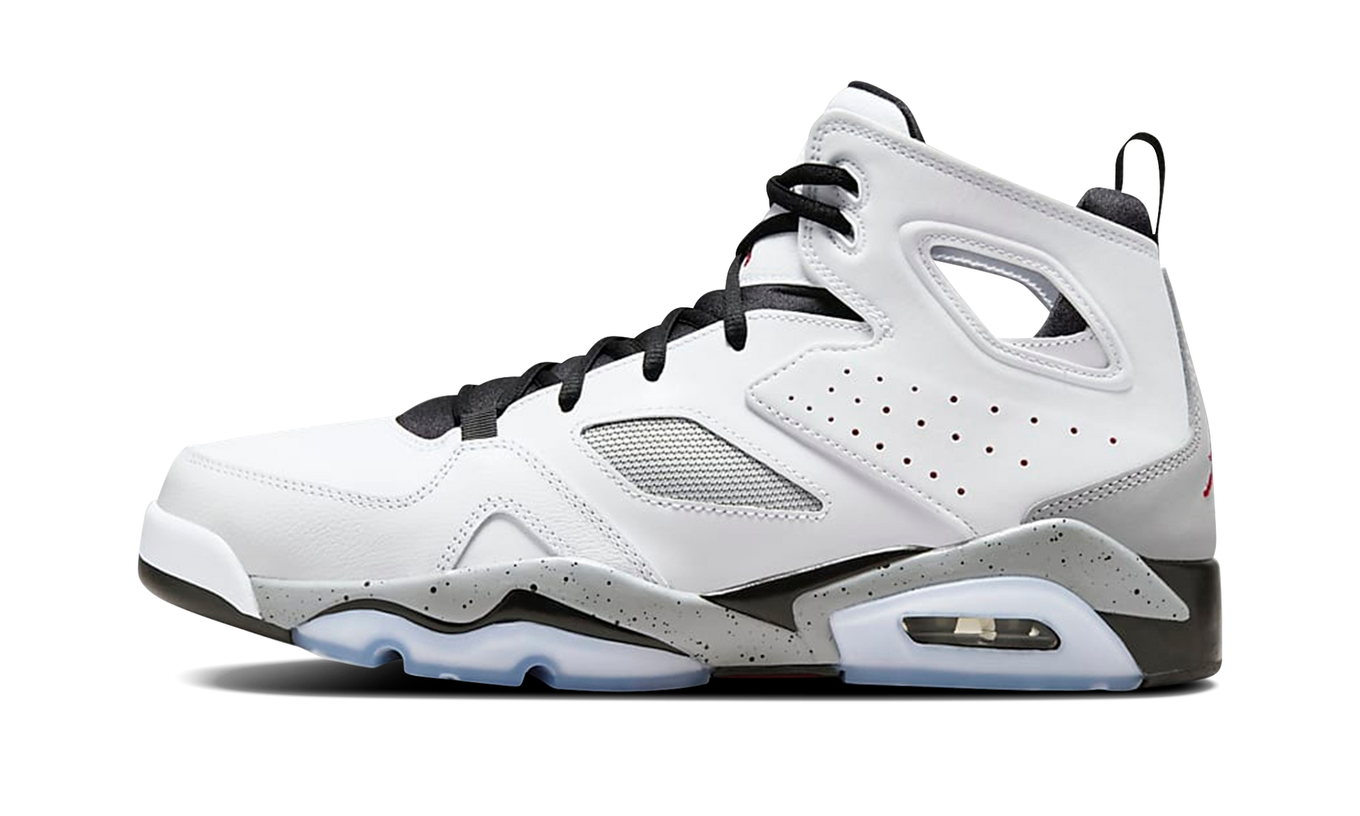 Experience old-school inspiration with the Jordan Flight Club 91 "White Cement." This lifestyle sneaker channels the aesthetic of a championship era. drawing heavily from the iconic Air Jordan 6. It boasts a clean White and Grey upper. accented with the legendary "Cement" speckled detailing. Featuring a genuine and synthetic leather construction with a visible Air-Sole unit in the heel for cushioning. this model delivers a retro look and supportive. all-day comfort.