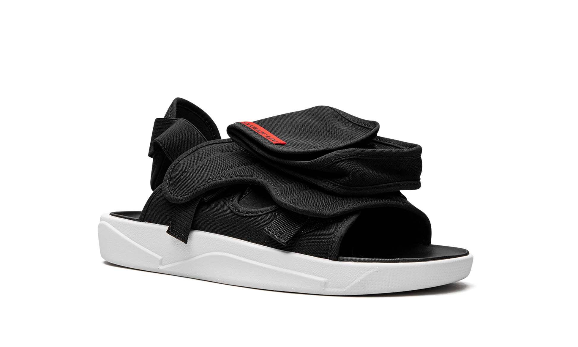 The Jordan LS Slide “Black/Whiteâ€?is a slip-on sandal with a classic. neutral-based colorway. The Jordan LS Slide is a comfortable sandal designed for casual and post-activity wear. The upper features a fold-over strap constructed from black nylon that stabilizes the wearer's foot. The heel strap is constructed with a cushioning pad for comfort. A tonal branding tag with detailing inspired by Michael Jordan is found on the vamp. The white foam footbed provides a comfortable ride.