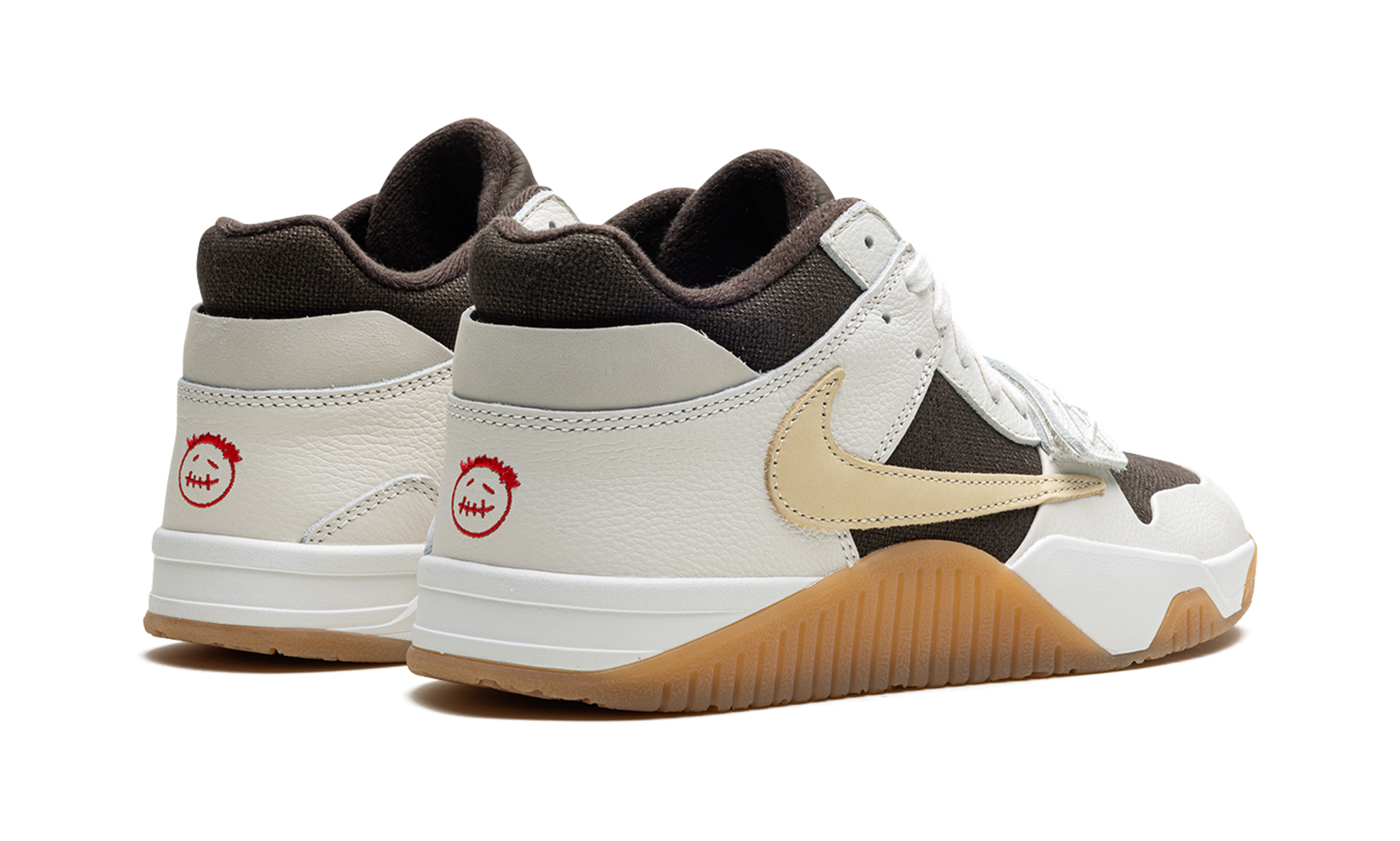 The Travis Scott x Jordan Jumpman Jack “Cut the Checkâ€?is the hip-hop star's debut signature shoe with Jordan Brand. After high-profile collaborations with Nike and Jordan Brand. Travis Scott released his first signature shoe. the Jordan Jumpman Jack. with Jordan Brand in 2024. The sneaker features details from Scott's previous collaborations. like a backwards Swoosh and smiley face logos. The upper has a Muslin textile base. Sail leather overlays. and a backwards Swoosh on the lateral side. A standard leather Swoosh can be found on the medial side. while a Sail leather midfoot strap provides a lockdown fit. Scott's signature smiley face logo is embroidered in red on the heel. A gum rubber outsole completes the look. Release date: April 30. 2024