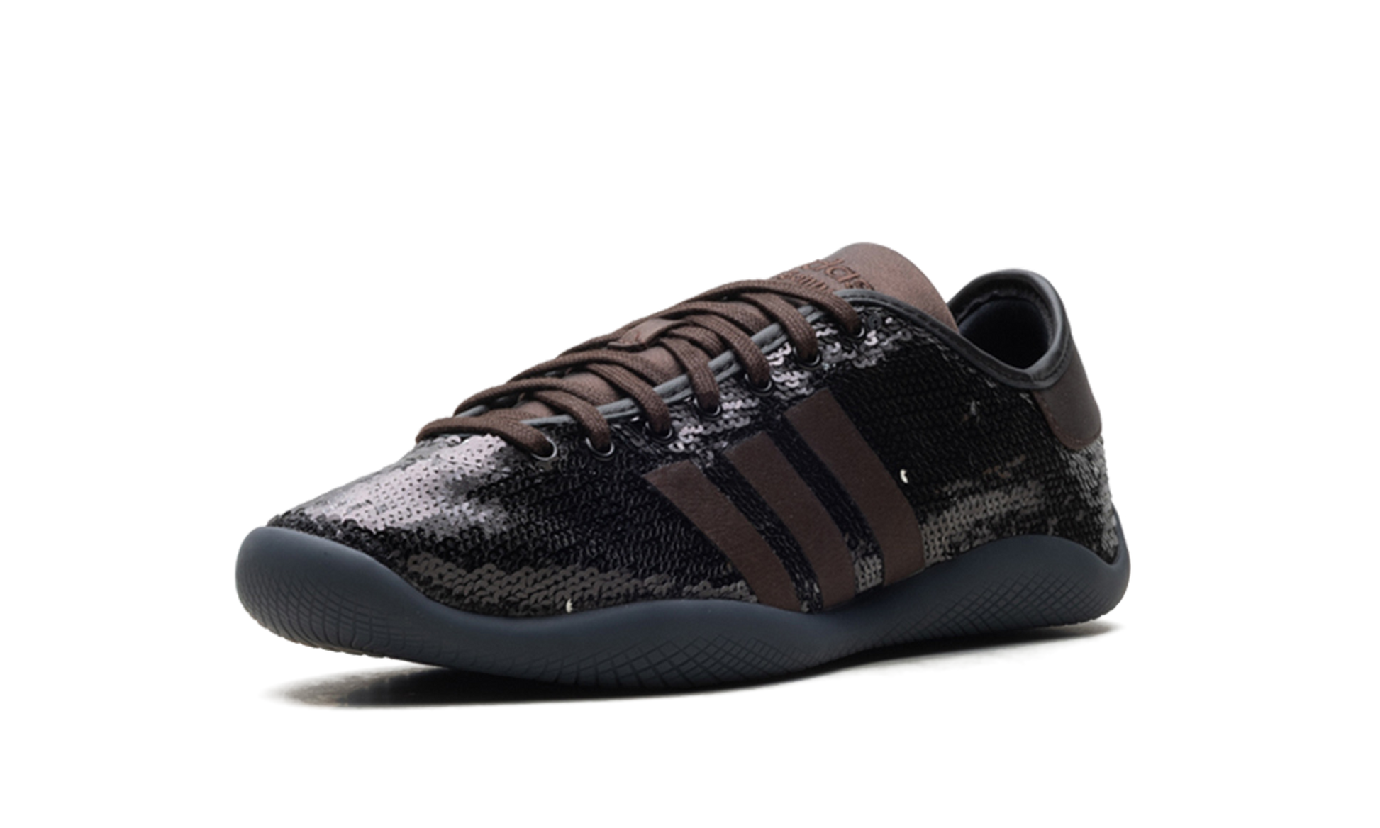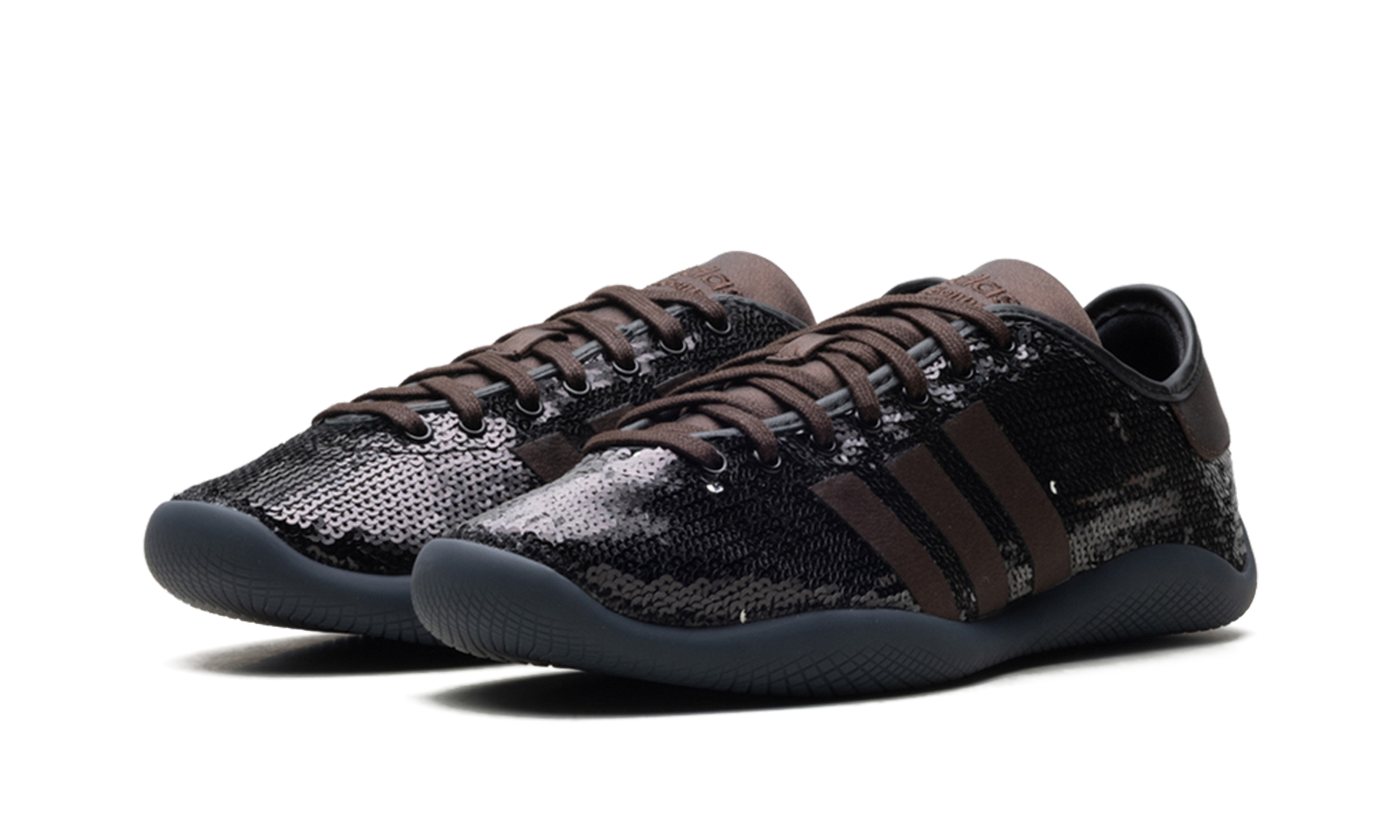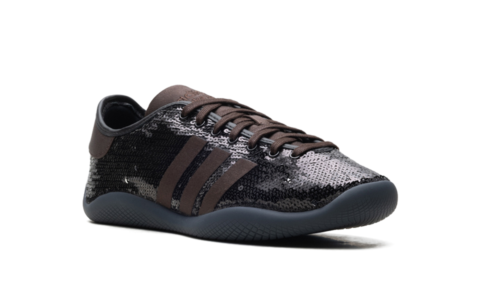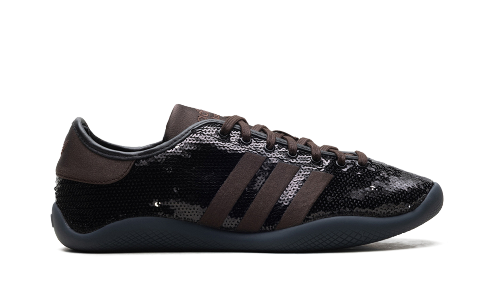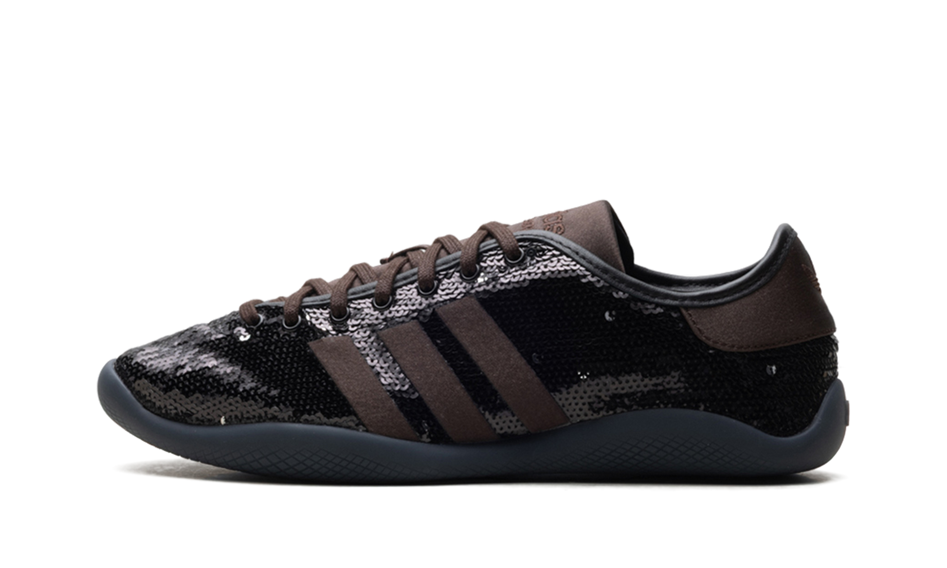 Step into elevated style with the magnificent ADIDAS Karintha "Wales Bonner - Black Dark Brown Sequin." This stunning collaboration transforms a classic silhouette into a dazzling. luxury statement piece. The upper is completely covered in shimmering black and dark brown sequins. offering an unmatched textural depth and sophisticated shine. Merging the sportswear heritage of Adidas with Wales Bonner's distinct. high-fashion aesthetic. this exclusive shoe is perfect for the modern enthusiast who wants a bold look. Secure this unique piece to add instant glamour to your rotation.