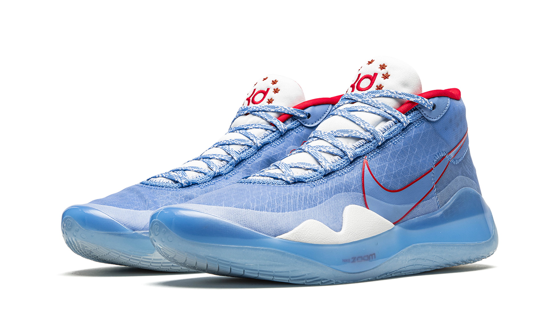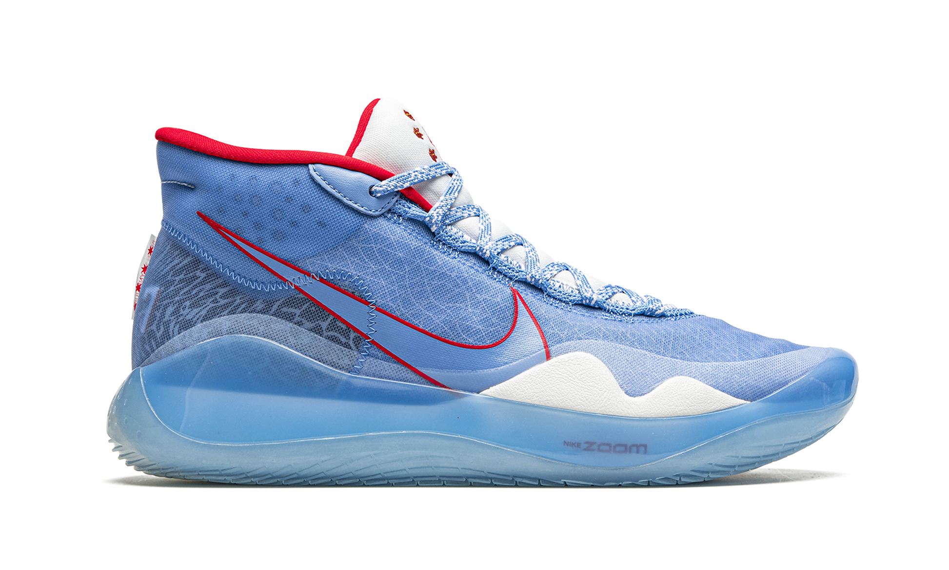 The Nike KD 12 "Don C" is a performance basketball shoe with a great story. one that honors Kevin Durant and Don C's love for the sport. The pair brings together the history shared by the two—Durant. a kid who dreamt about winning a championship ring. and Don C. a kid inspired by basketball culture and how it's weaved into fashion and music. Personal design touches of note: Copper lace eyelets that signify the train tracks to DC where KD used to watch the basketball greats. as well as the baby blue color and red stars that nod to the Don C's hometown Chicago flag.